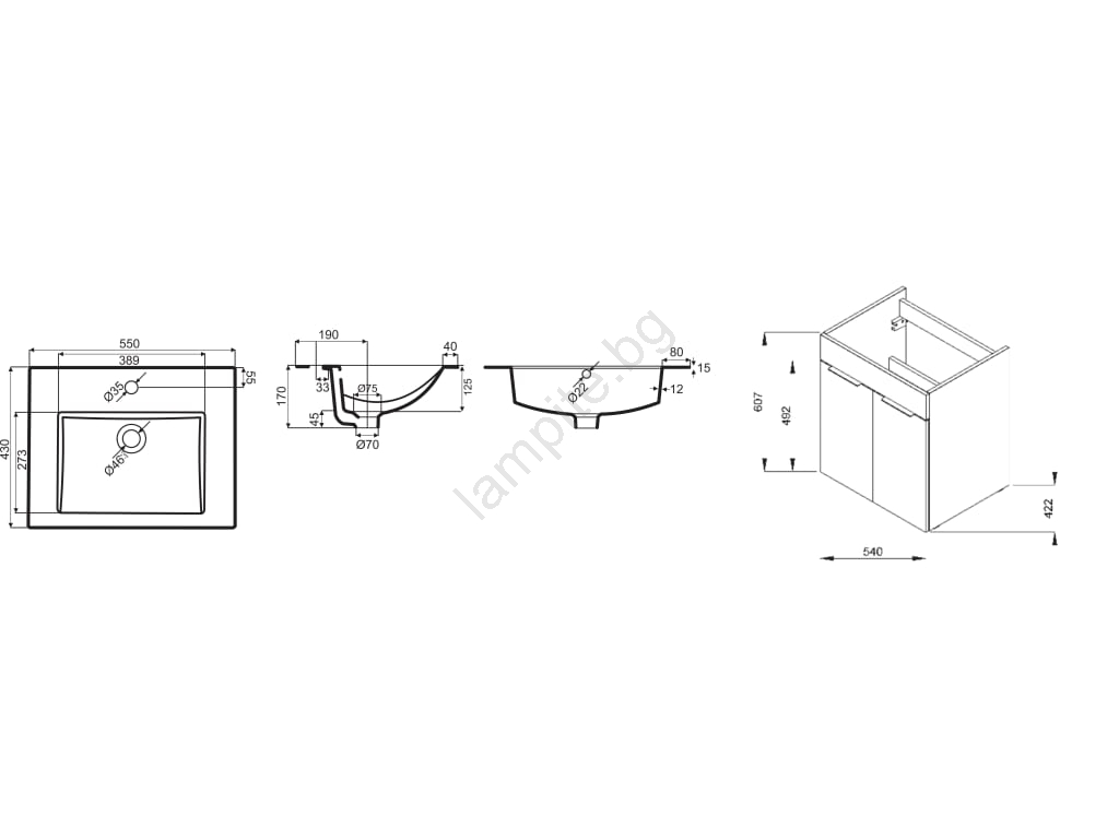 • Корпусът е изработен от здрав MDF материал с ламинатно покритие, подходящ за влажната среда в банята.