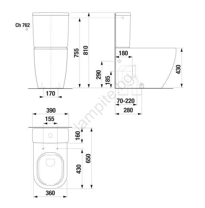 • Подова тоалетна с дълбоко промиване без промивен ринг.