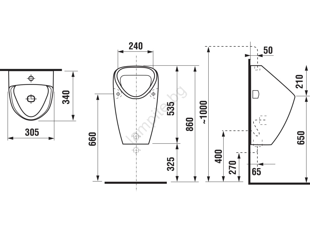 JIKA H8430610000001 - Писоар GOLEM с вътрешно присъединяване, заден отвод, керамика/бял