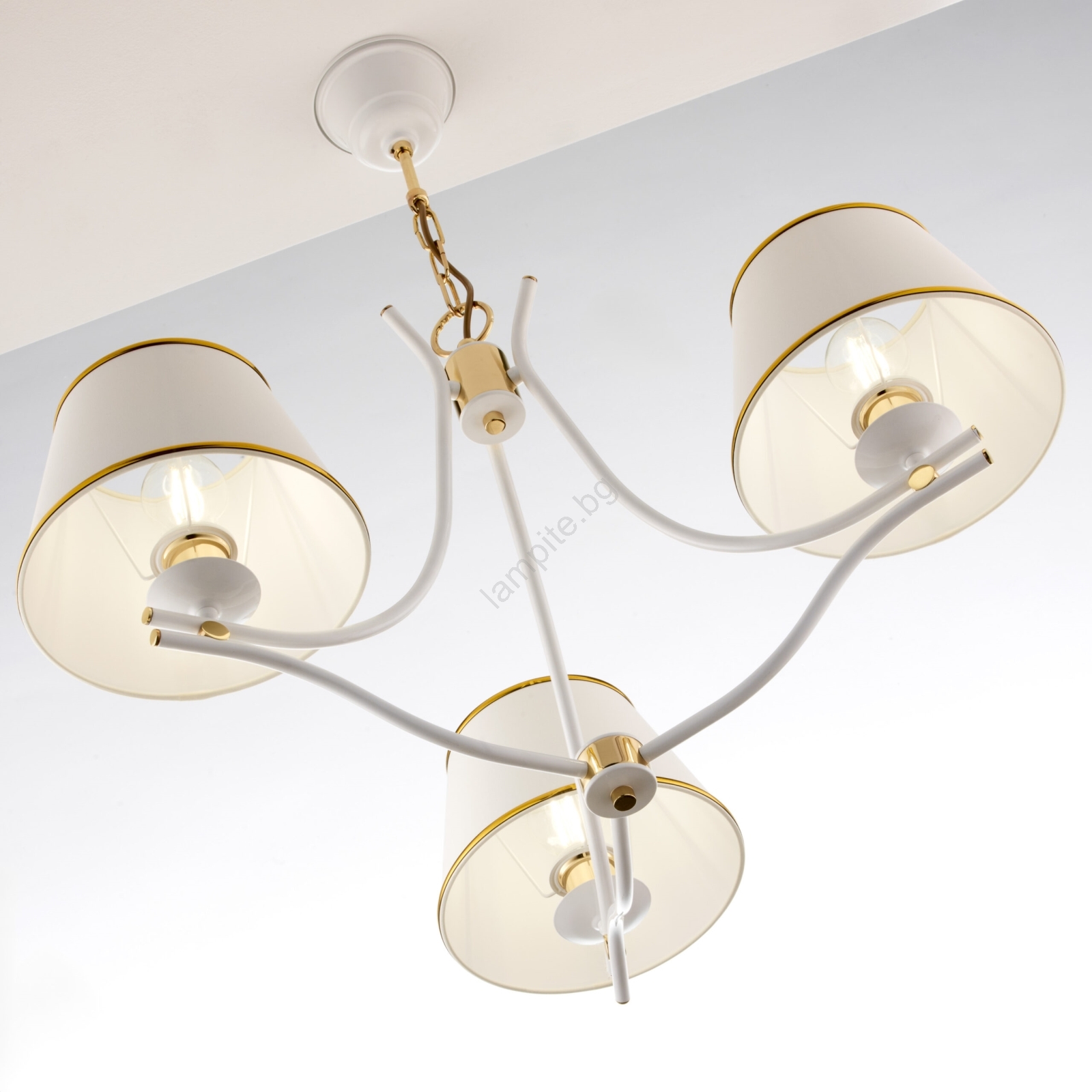 Jupiter 2085 - Полилей на верига SAMBA 3xE27/15W/230V бял/златист се отличава с приятен и функционален дизайн.  Подходяща е крушка с цокъл E27. Тук можете да закупите и други крушки на изгодни цени. Ще имате интересно допълнение към дома си.