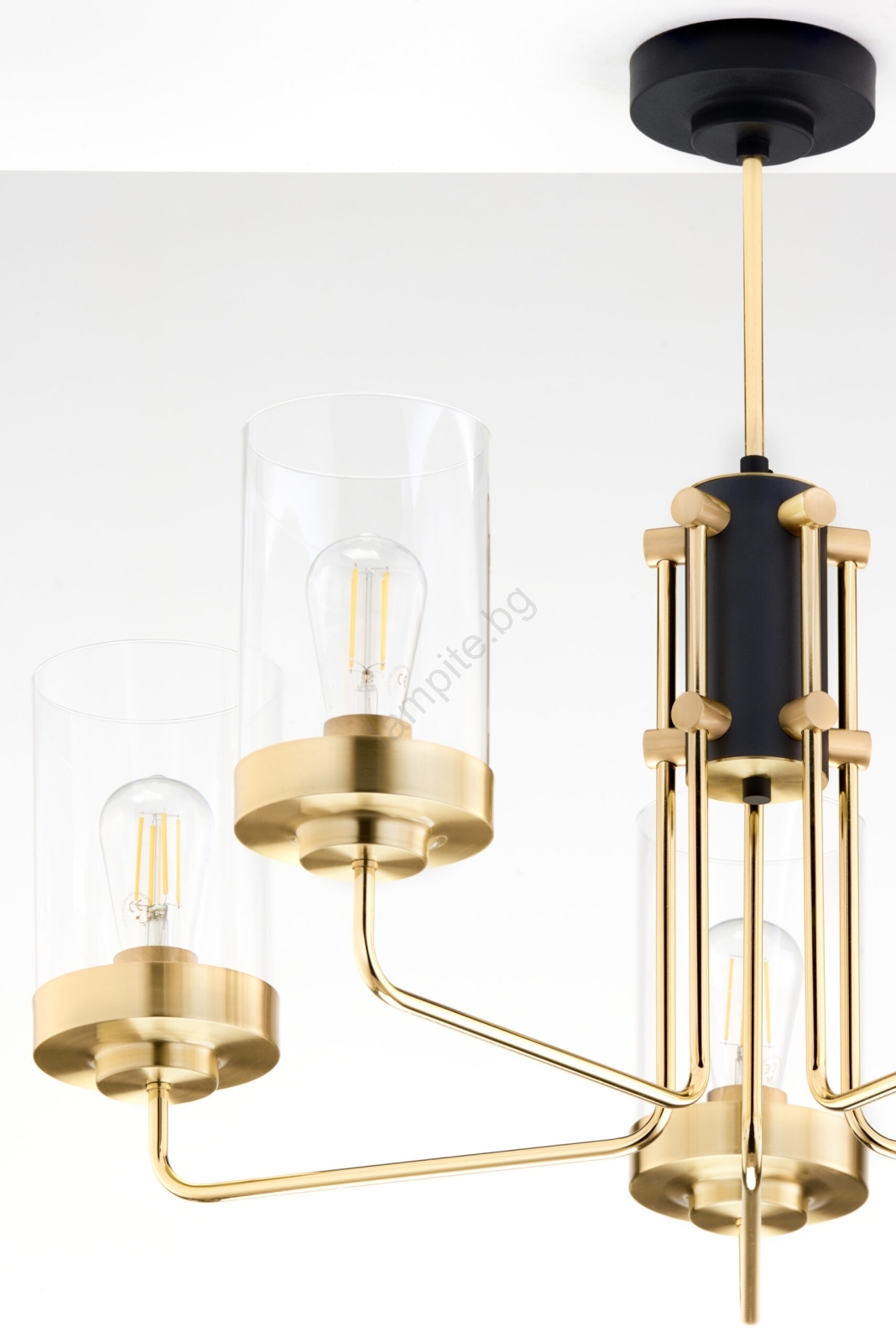 Jupiter 2088 - Полилей с прът RAMIREZ 5xE27/15W/230V златист/черен се отличава с приятен и функционален дизайн.  Подходяща е крушка с цокъл E27. Тук можете да закупите и други крушки на изгодни цени. Ще имате интересно допълнение към дома си.