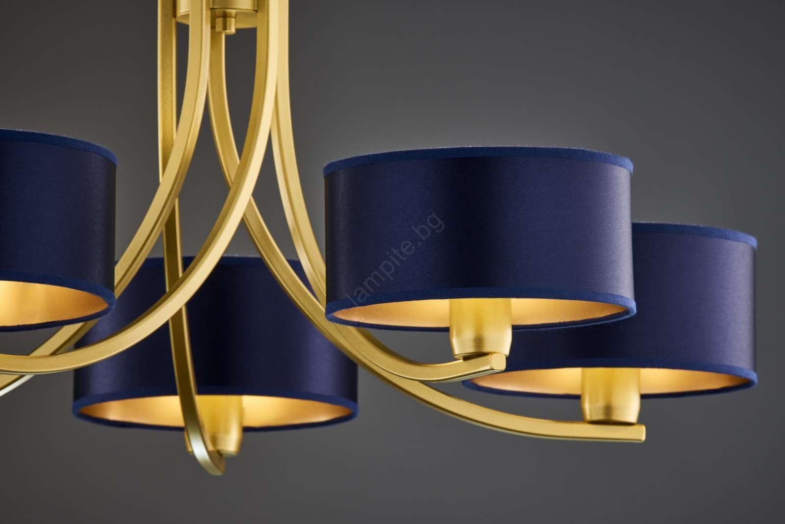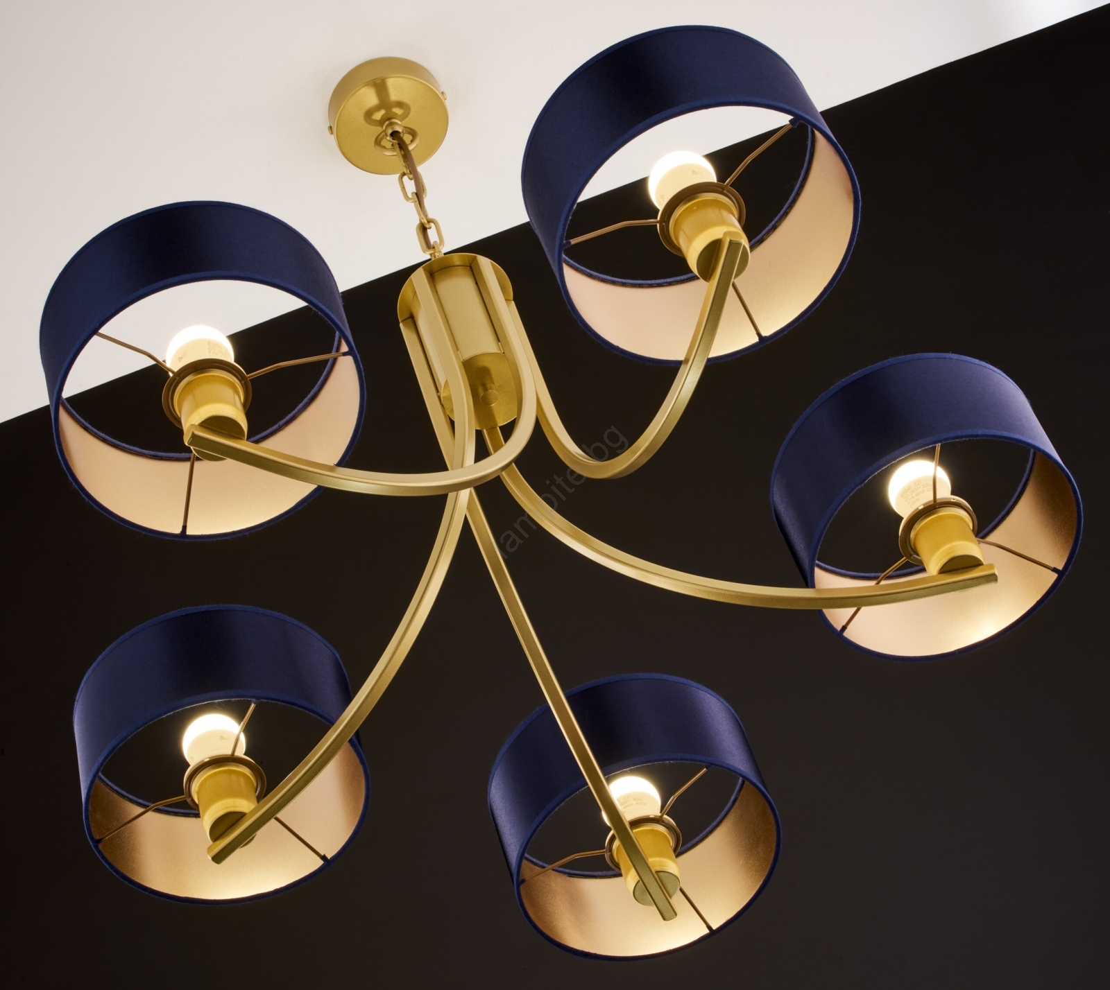 Jupiter 2094 - Полилей на верига ARTHUR 5xE27/15W/230V син/златен