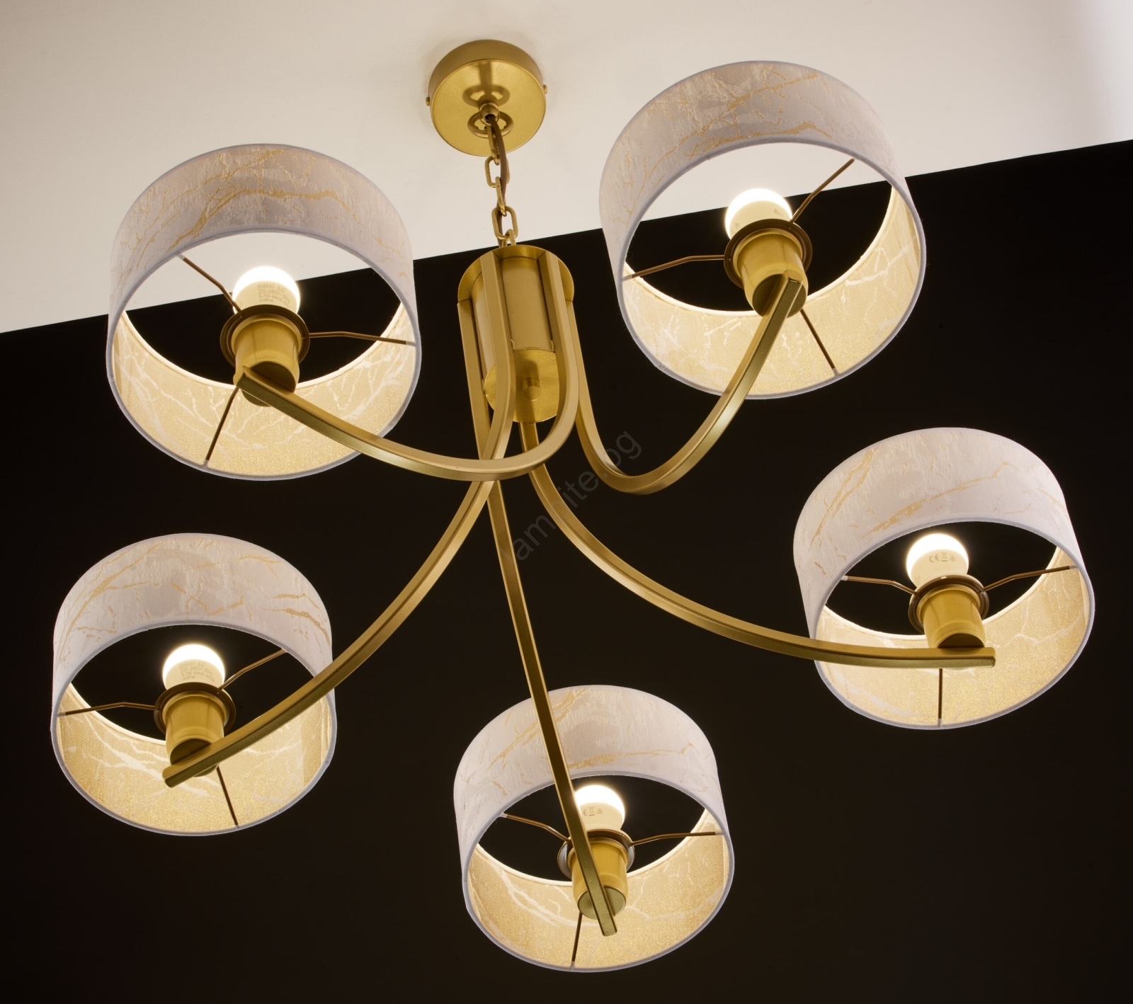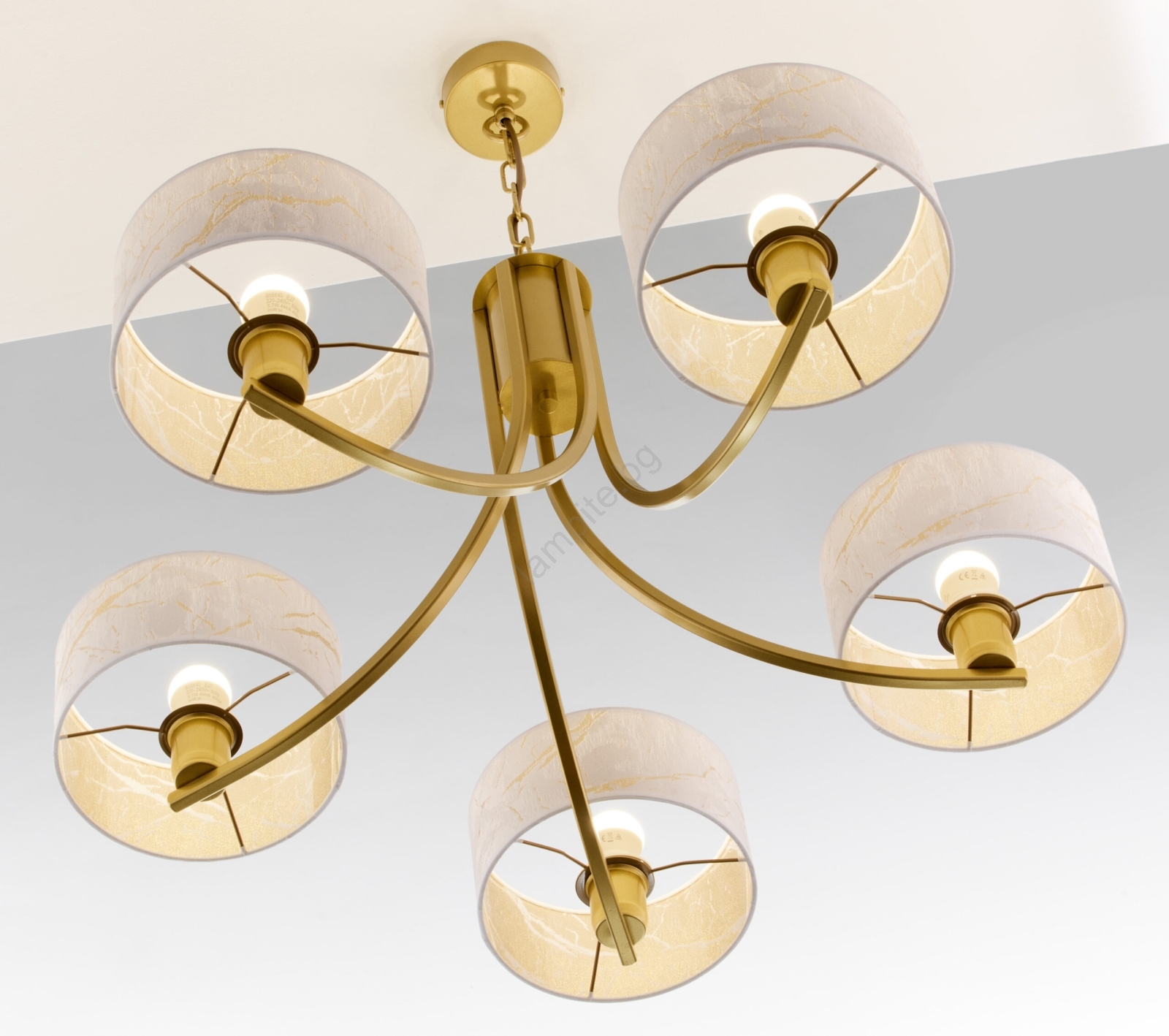Jupiter 2097 - Полилей на верига ARTHUR 5xE27/15W/230V бял/златист/мраморен декор се отличава с приятен и функционален дизайн.  Подходяща е крушка с цокъл E27. Тук можете да закупите и други крушки на изгодни цени. Ще имате интересно допълнение към дома си.