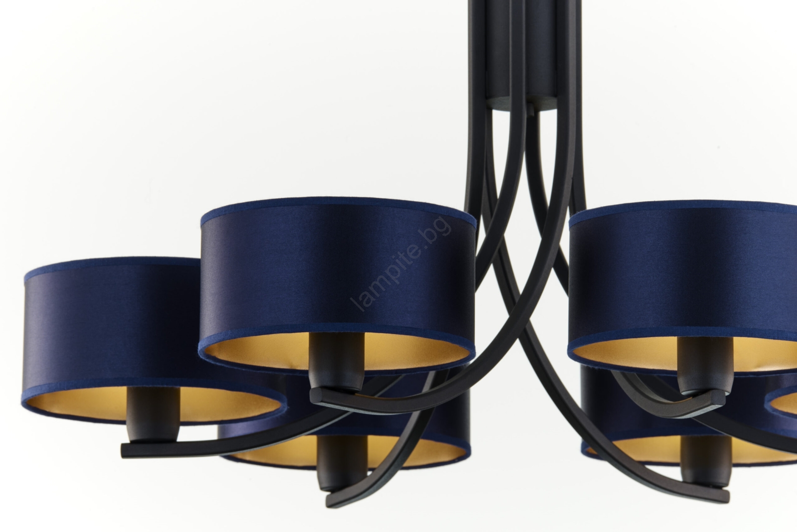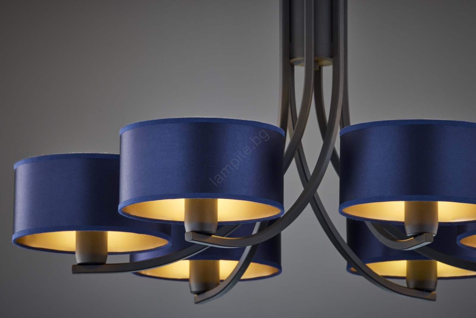 • Jupiter 2102 - Полилей на верига ARTHUR 6xE27/15W/230V син/черен