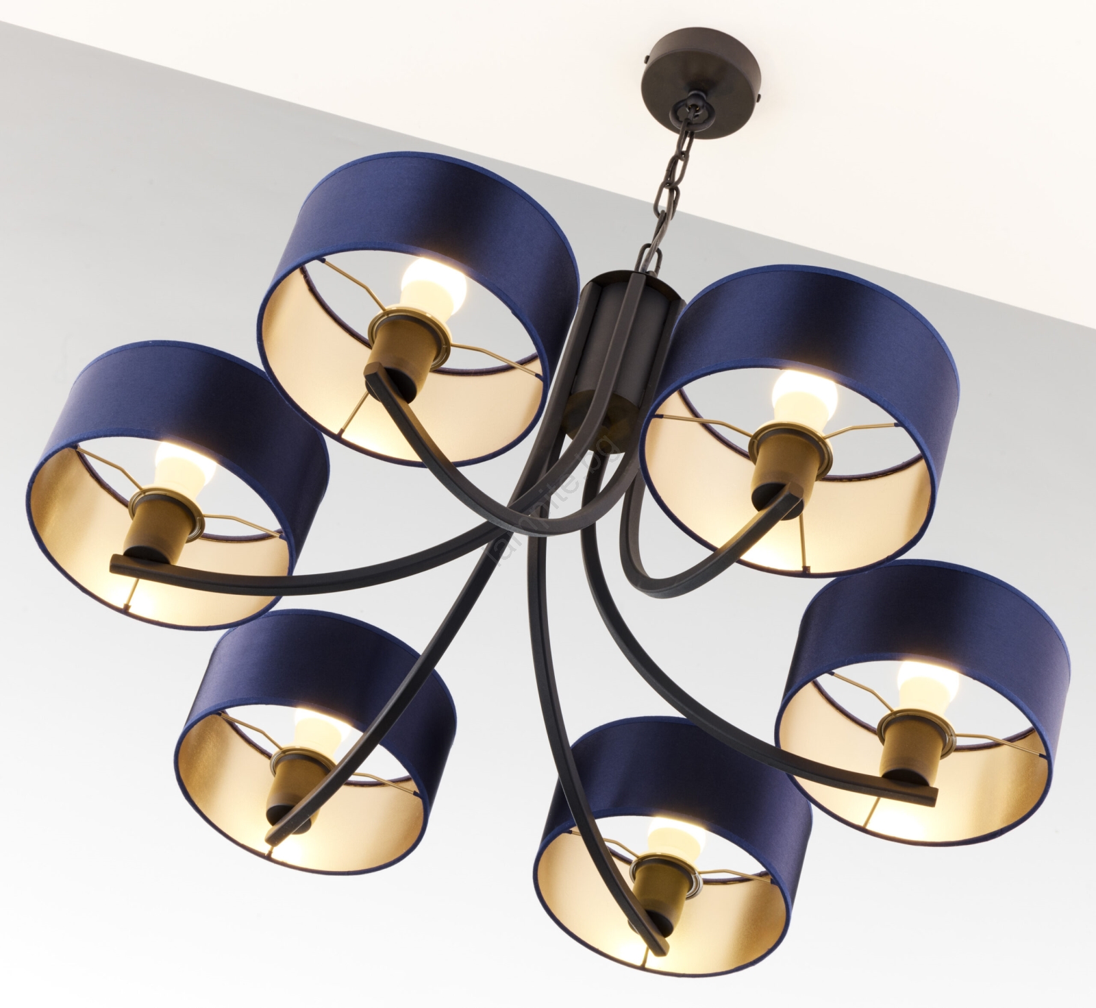 Jupiter 2102 - Полилей на верига ARTHUR 6xE27/15W/230V син/черен