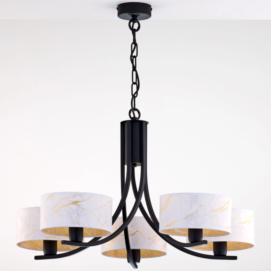 Jupiter 2104 - Полилей на верига ARTHUR 5xE27/15W/230V бял/черен/мраморен декор
