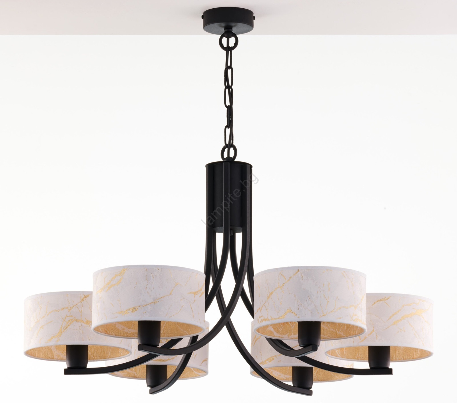 Jupiter 2105 - Полилей на верига ARTHUR 6xE27/15W/230V бял/черен/мраморен декор се отличава с приятен и функционален дизайн.  Подходяща е крушка с цокъл E27. Тук можете да закупите и други крушки на изгодни цени. Ще имате интересно допълнение към дома си.