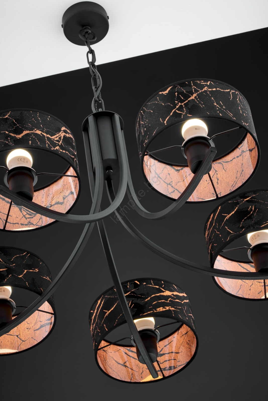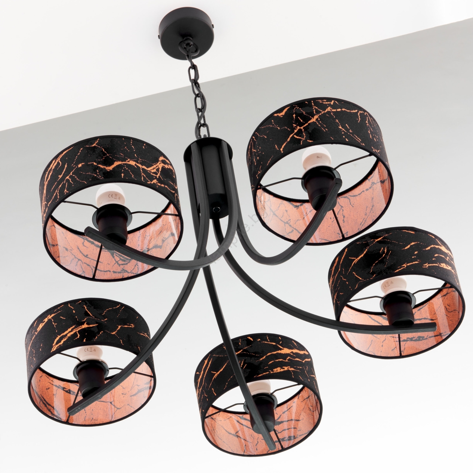 Jupiter 2107 - Полилей на верига ARTHUR 5xE27/15W/230V черен/оранжев/мраморен декор се отличава с приятен и функционален дизайн.  Подходяща е крушка с цокъл E27. Тук можете да закупите и други крушки на изгодни цени. Ще имате интересно допълнение към дома си.