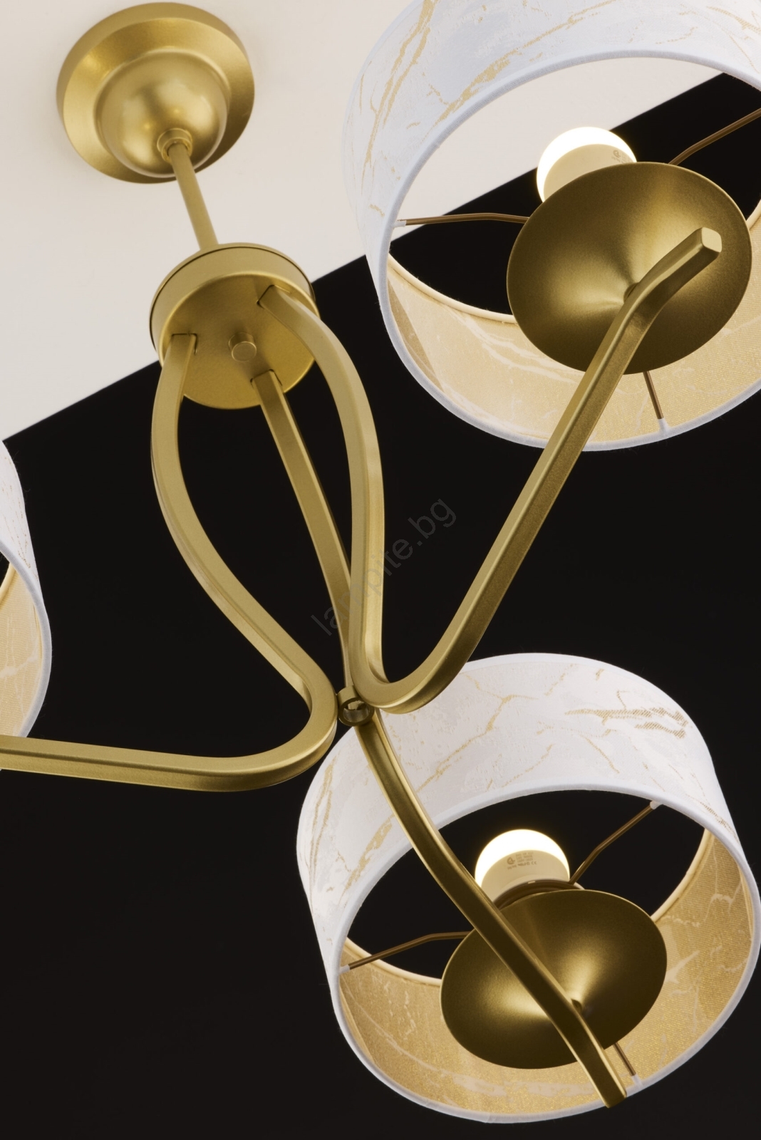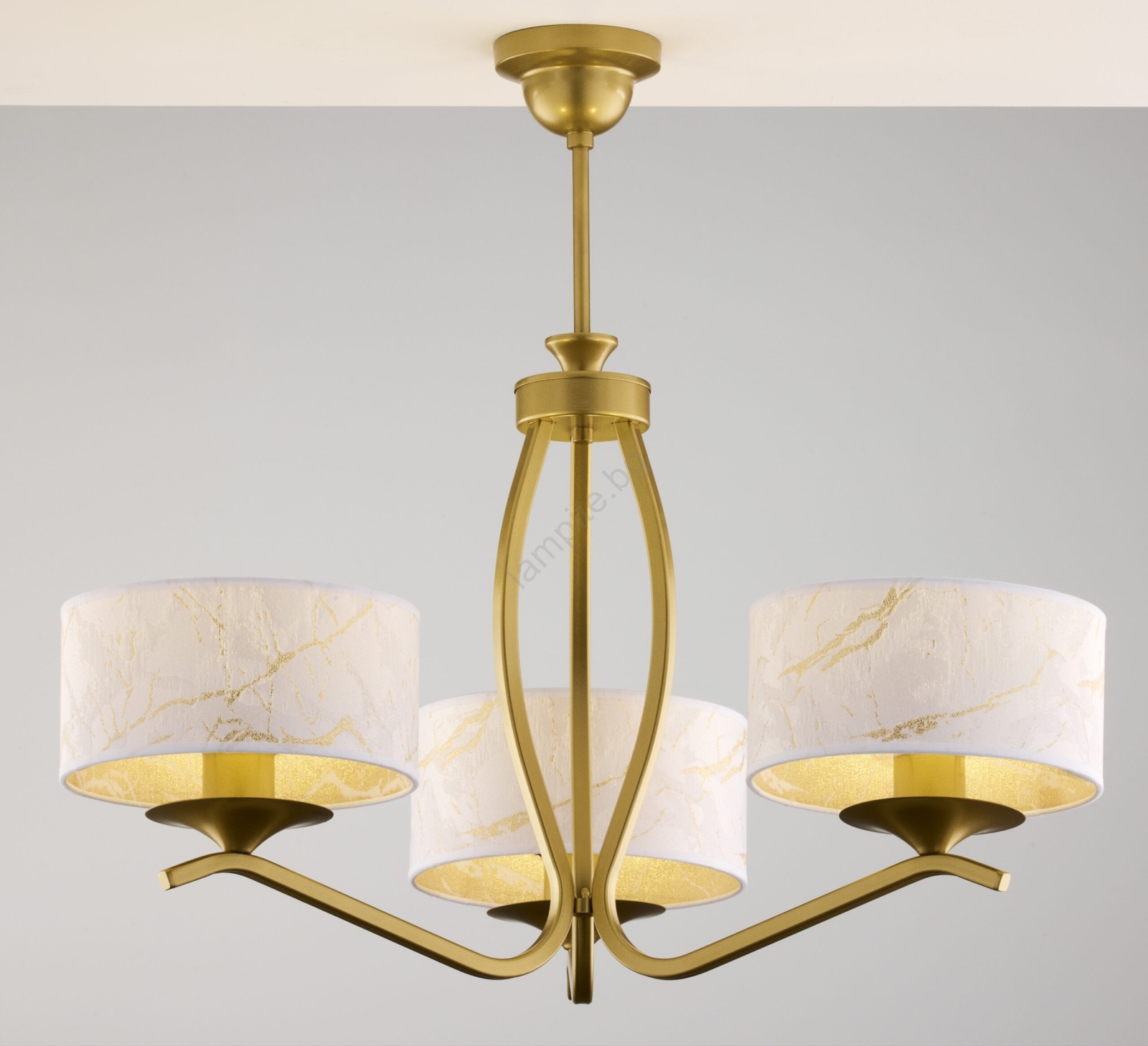 Jupiter 2109 - Полилей на штанга KASZMIR 3xE27/15W/230V бял/златист/мраморен декор се отличава с приятен и функционален дизайн.  Подходяща е крушка с цокъл E27. Тук можете да закупите и други крушки на изгодни цени. Ще имате интересно допълнение към дома си.