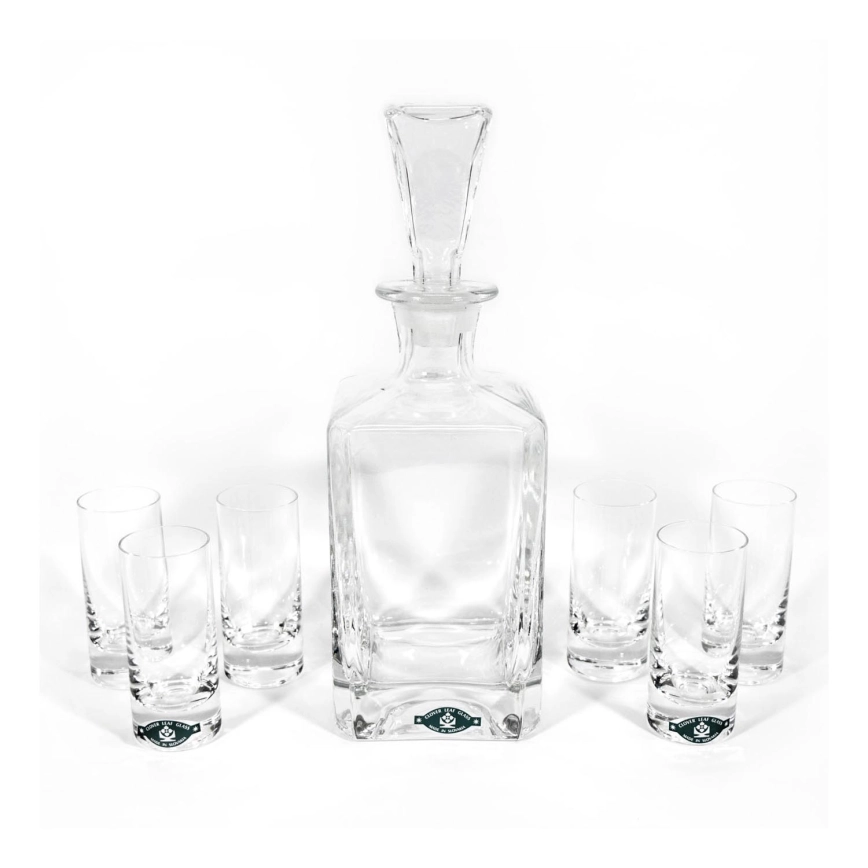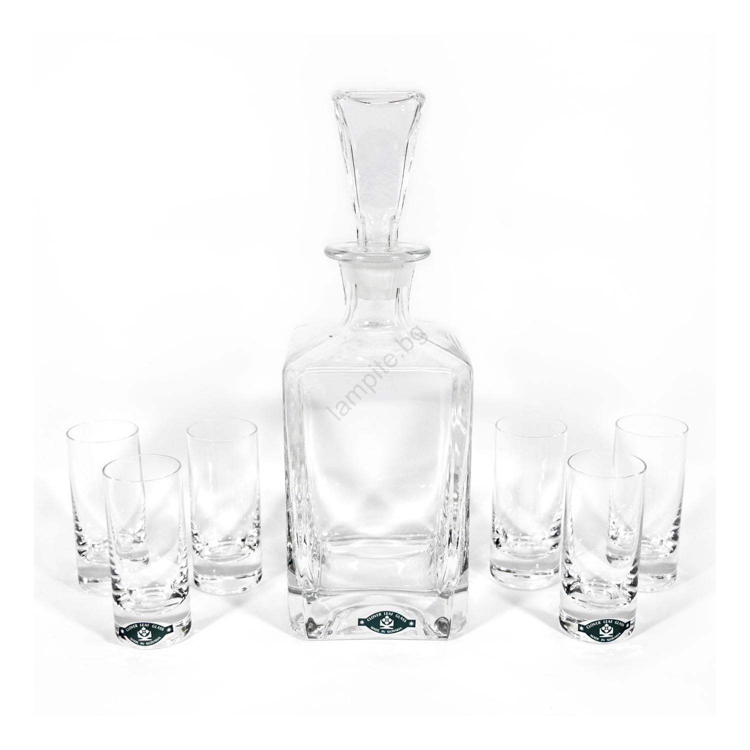 К-кт 1бр. стъклена бутилка, 1бр. стъклена тапа и 6бр. чаши за шотове прозрачни