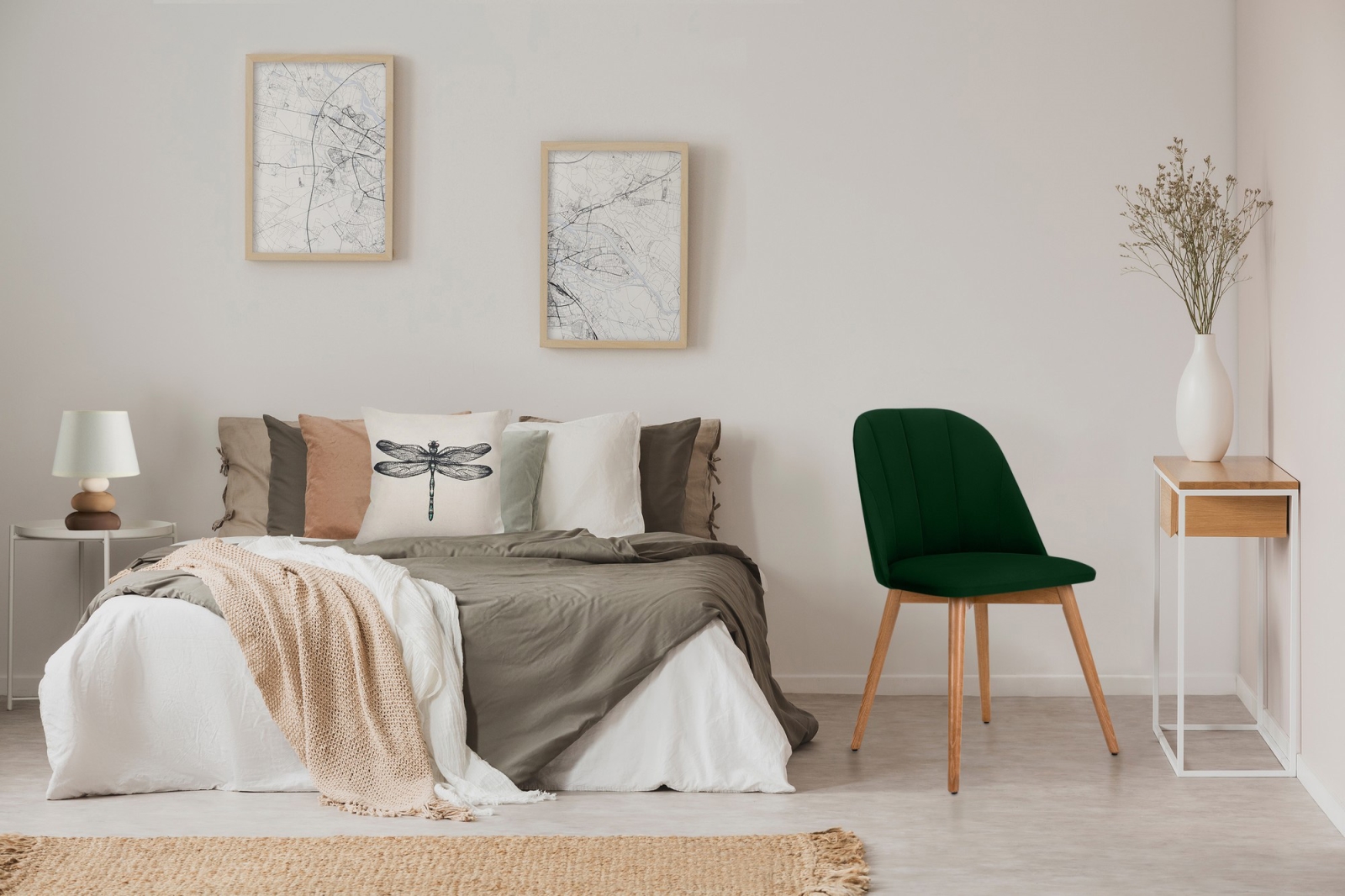 • Трапезен стол BAKERI 86x48 см тъмнозелен/светъл дъб