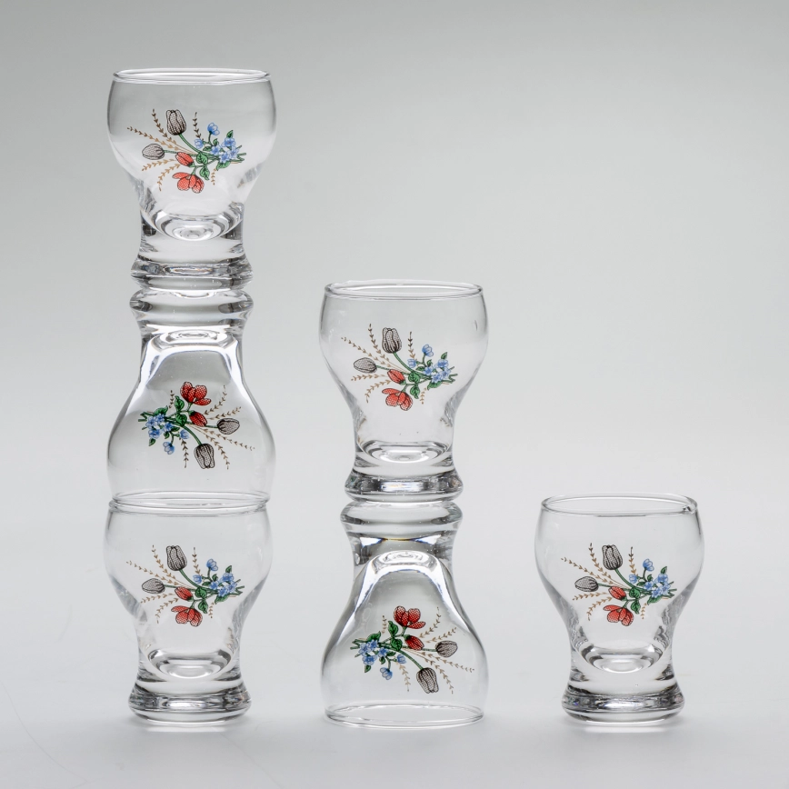 К-кт 6x чаша за ликьор прозрачен - цветна шарка номер 1