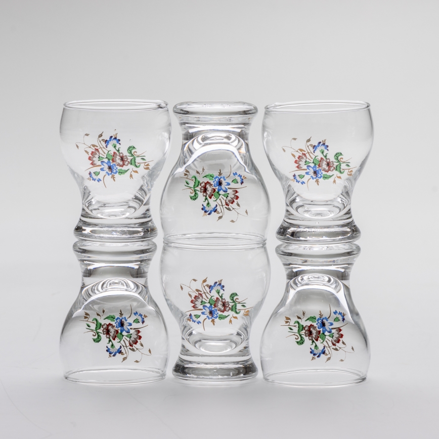 К-кт 6x чаша за ликьор прозрачен - цветна шарка номер 4