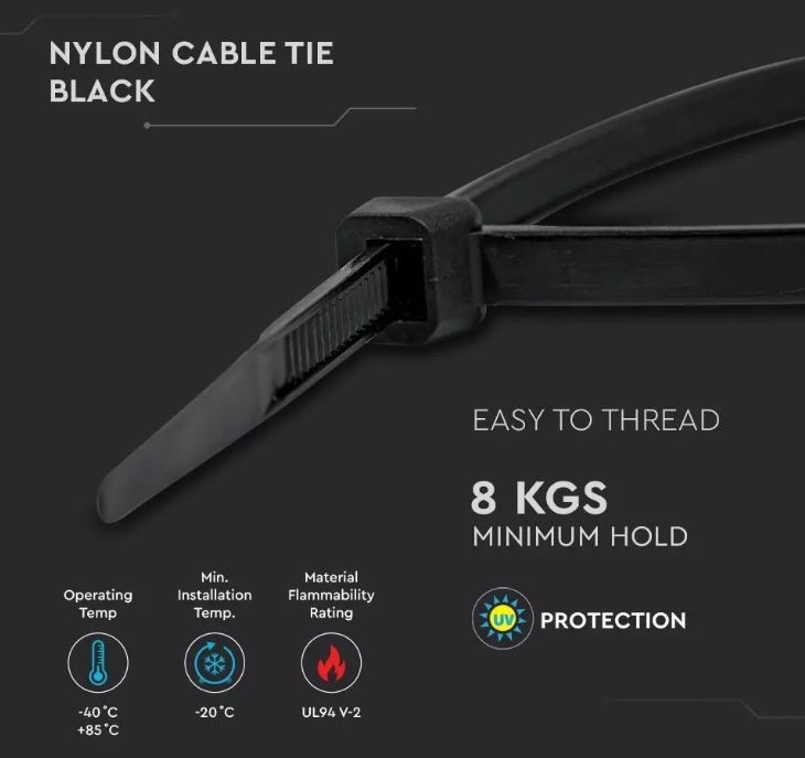 Пластмасови кабелни превръзки 2,5x100мм 100 бр. черни