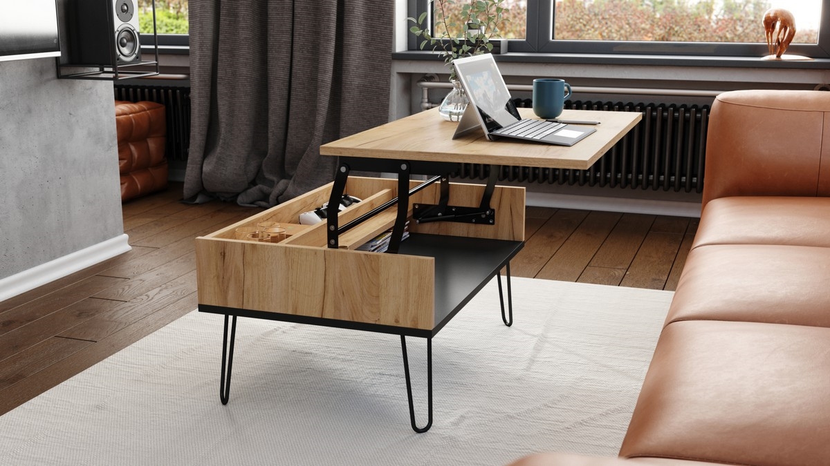 Конферентна маса с повдигаем плот и полица HALIJA дъб крафт/черна