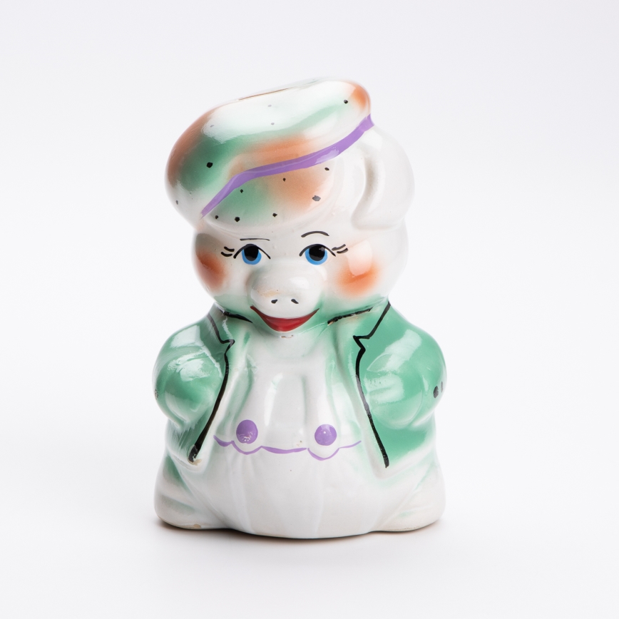 • Керамична касичка за пари под формата на прасенце.
