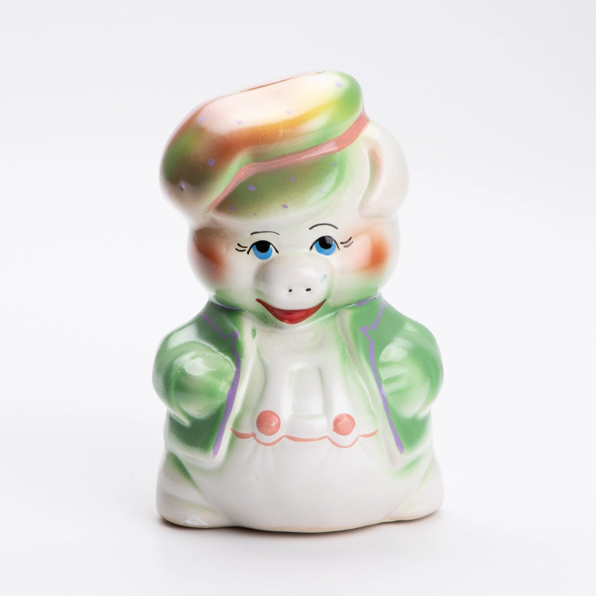 • Керамична касичка за пари под формата на прасенце.