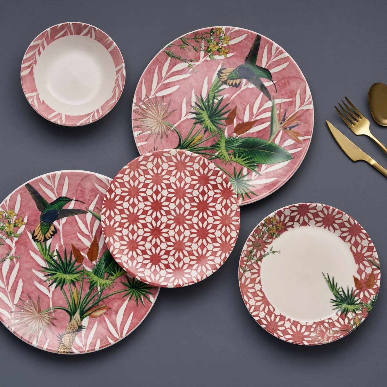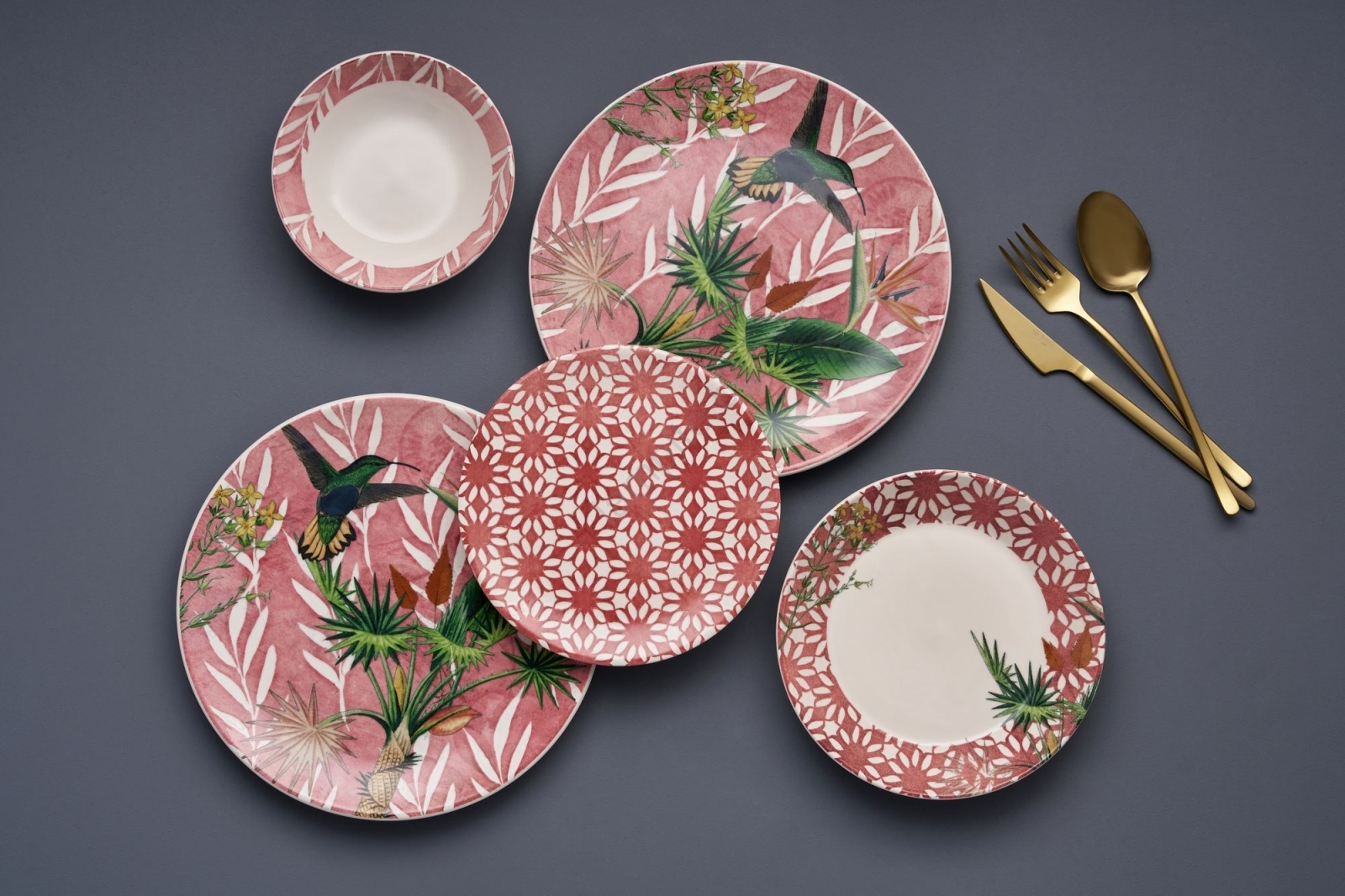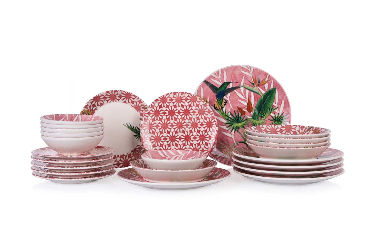 Керамичен комплект за хранене 24 части — червено/зелено/бяло