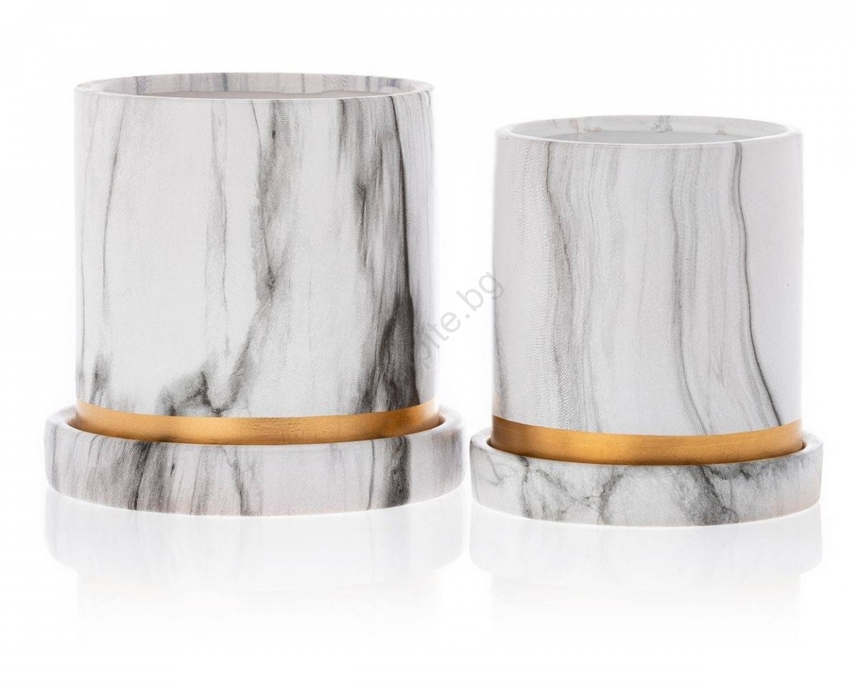 Керамична саксия с купа HANYA 11x11 см мраморен декор