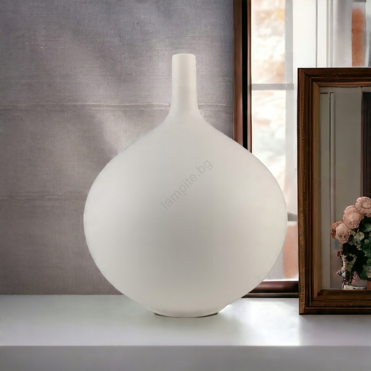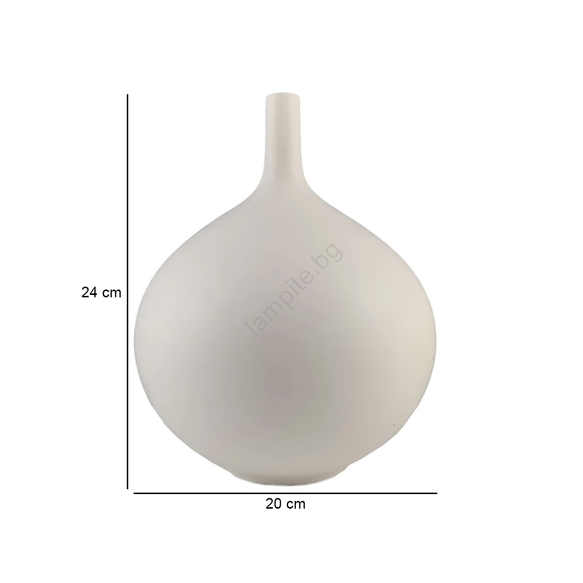 • Декоративна ваза за цветя с елегантна форма в бял цвят.