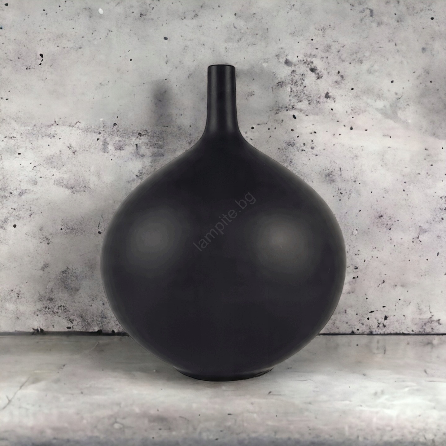 • Декоративна ваза за цветя с елегантна форма в черен цвят.