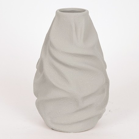 • Повърхността на вазата има изразена текстура, наподобяваща смачкана тъкан или хартия, което създава модерен и артистичен вид.