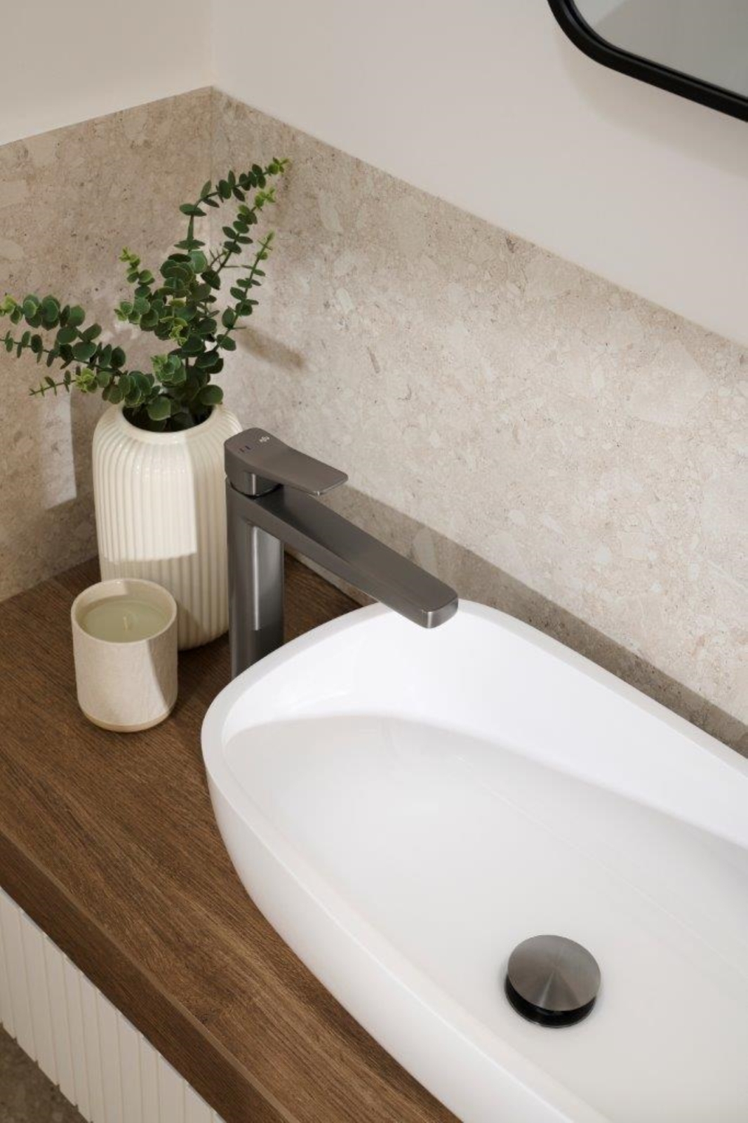 • Този едноръкохватков смесител за мивка е елегантно допълнение към всяка баня.