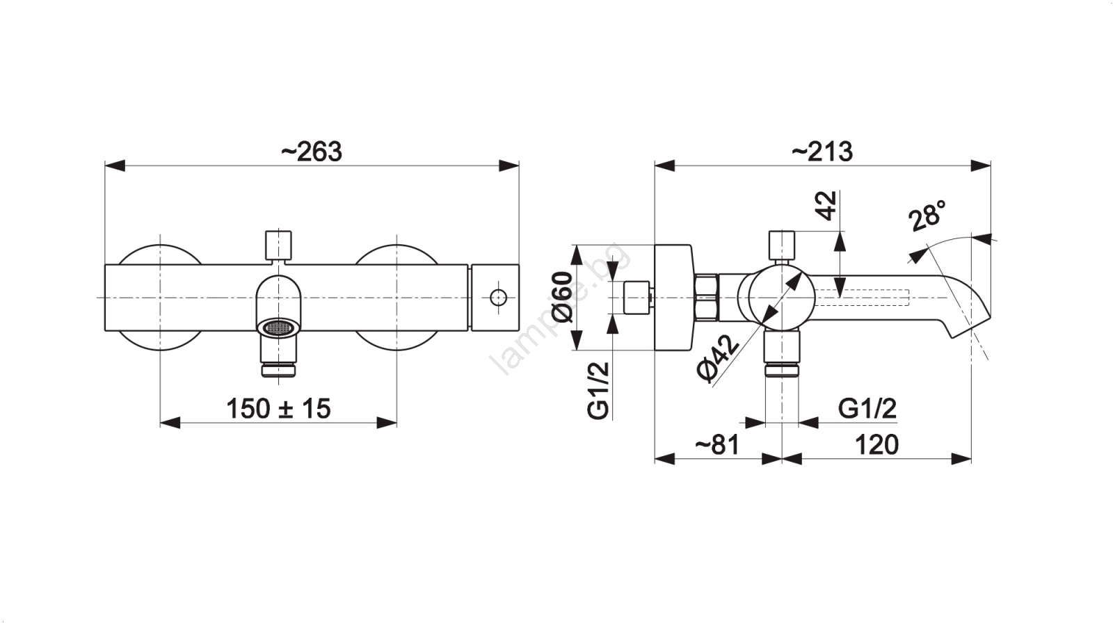 • Този едноръкохватков смесител за вана е елегантно допълнение към всяка баня.
