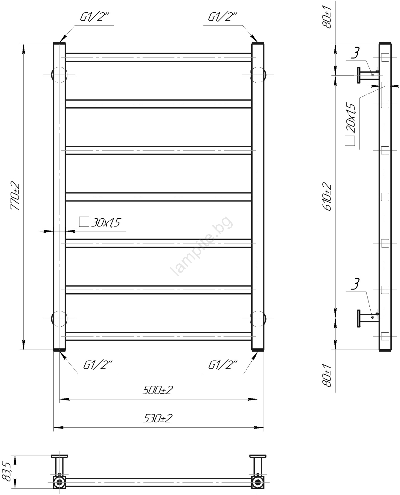 Хавлиена лира за баня INOX TOKIO 161W/230V 77x53 cm неръждаема стомана/бял