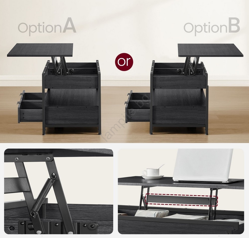 • Холна масичка NYRO с повдигащ се плот, кафява/черна