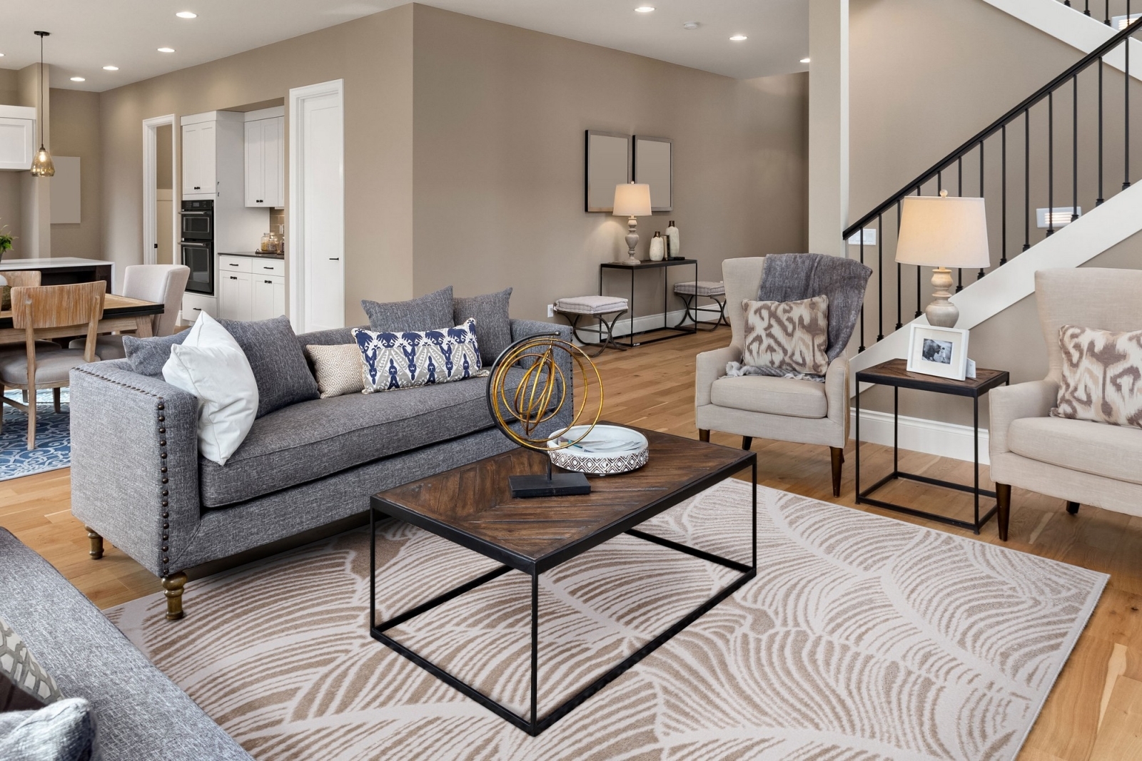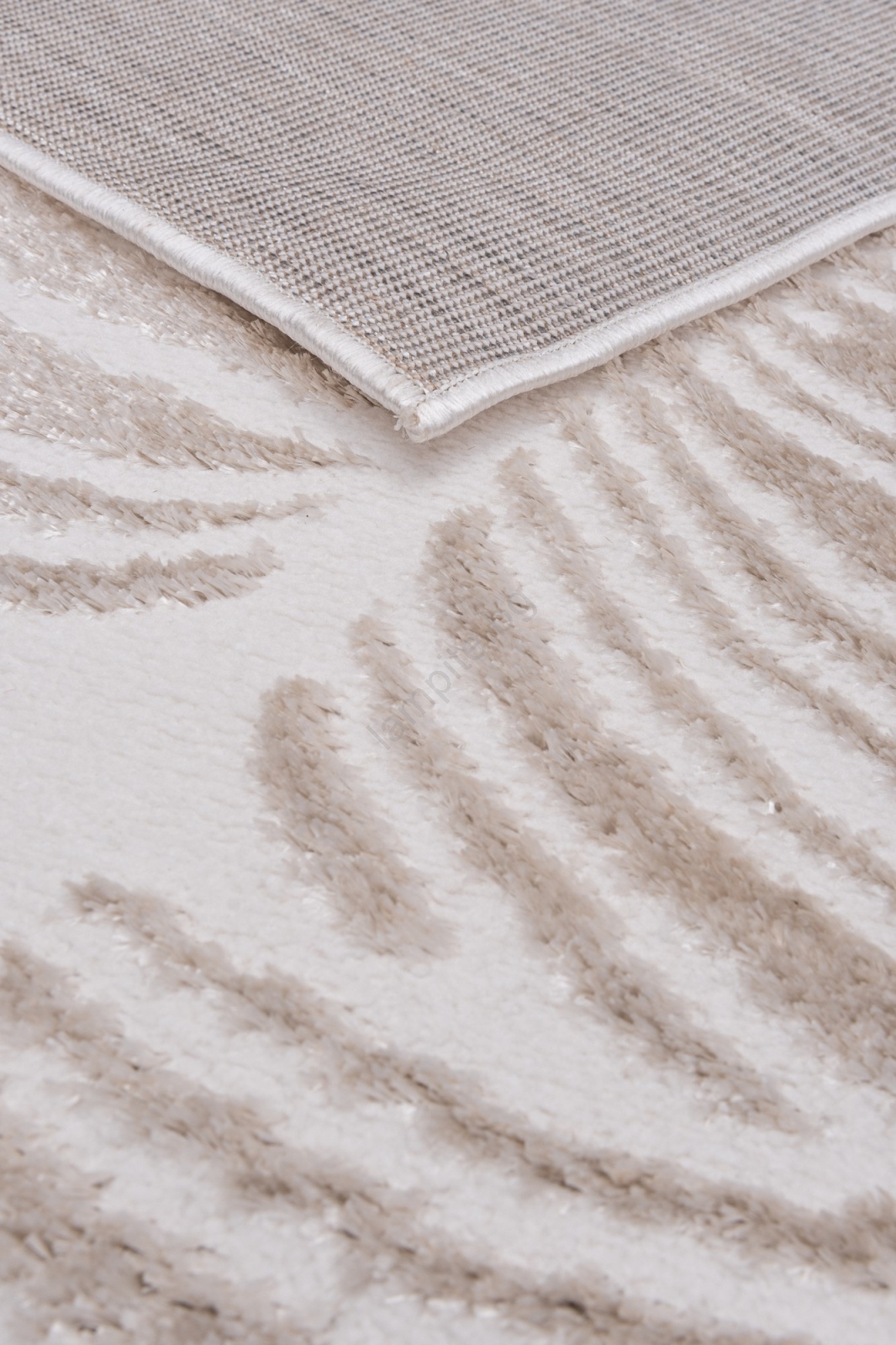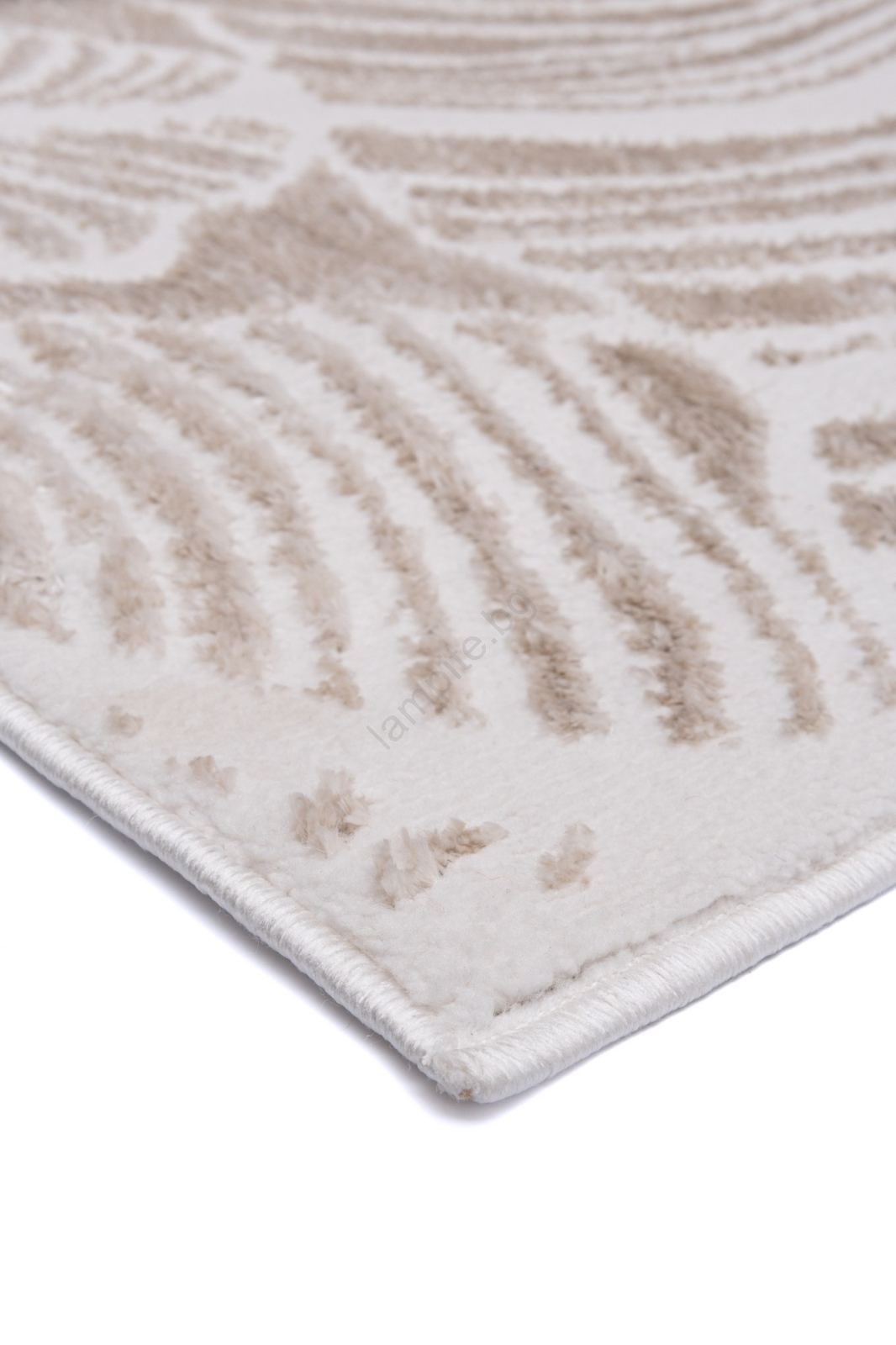 • Нежният бежов килим с дискретен листен мотив придава на всяко помещение усещане за лекота и уют.
