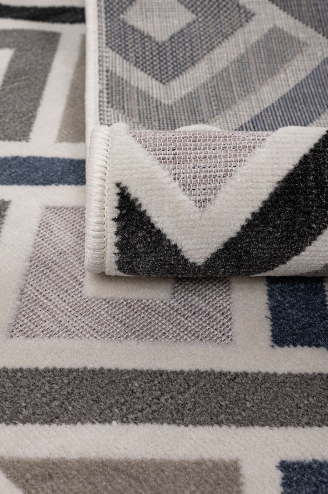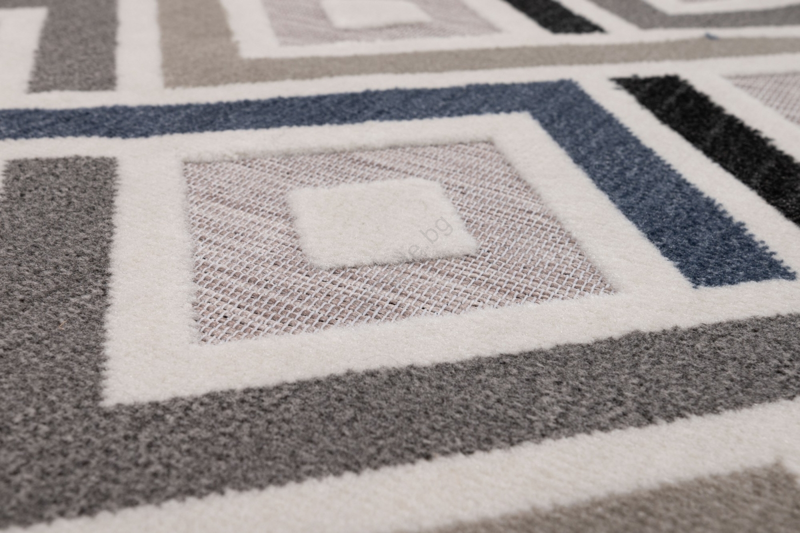 • Купчината има модерен геометричен десен и различни височини на влакната, което придава 3D ефект.