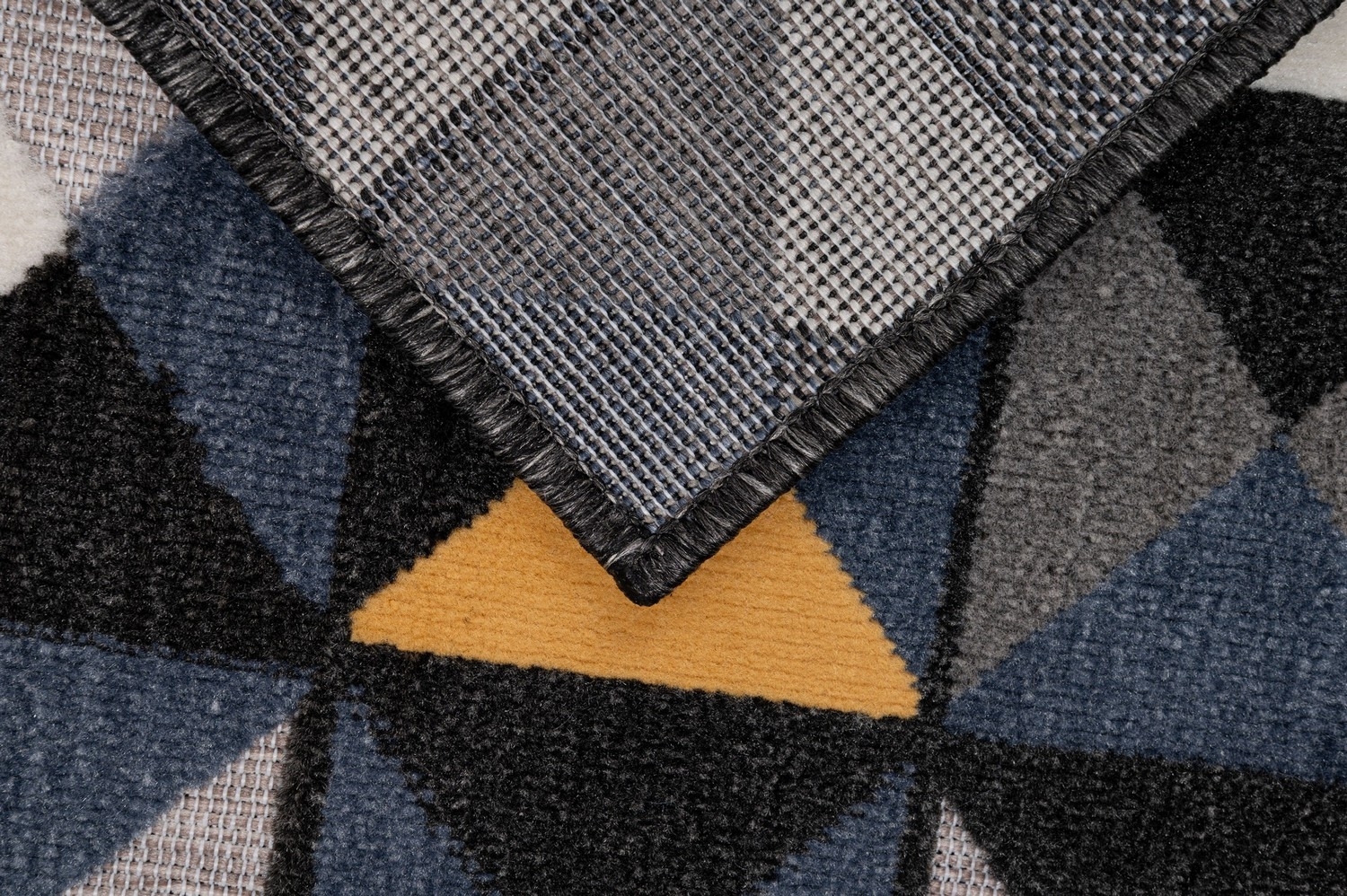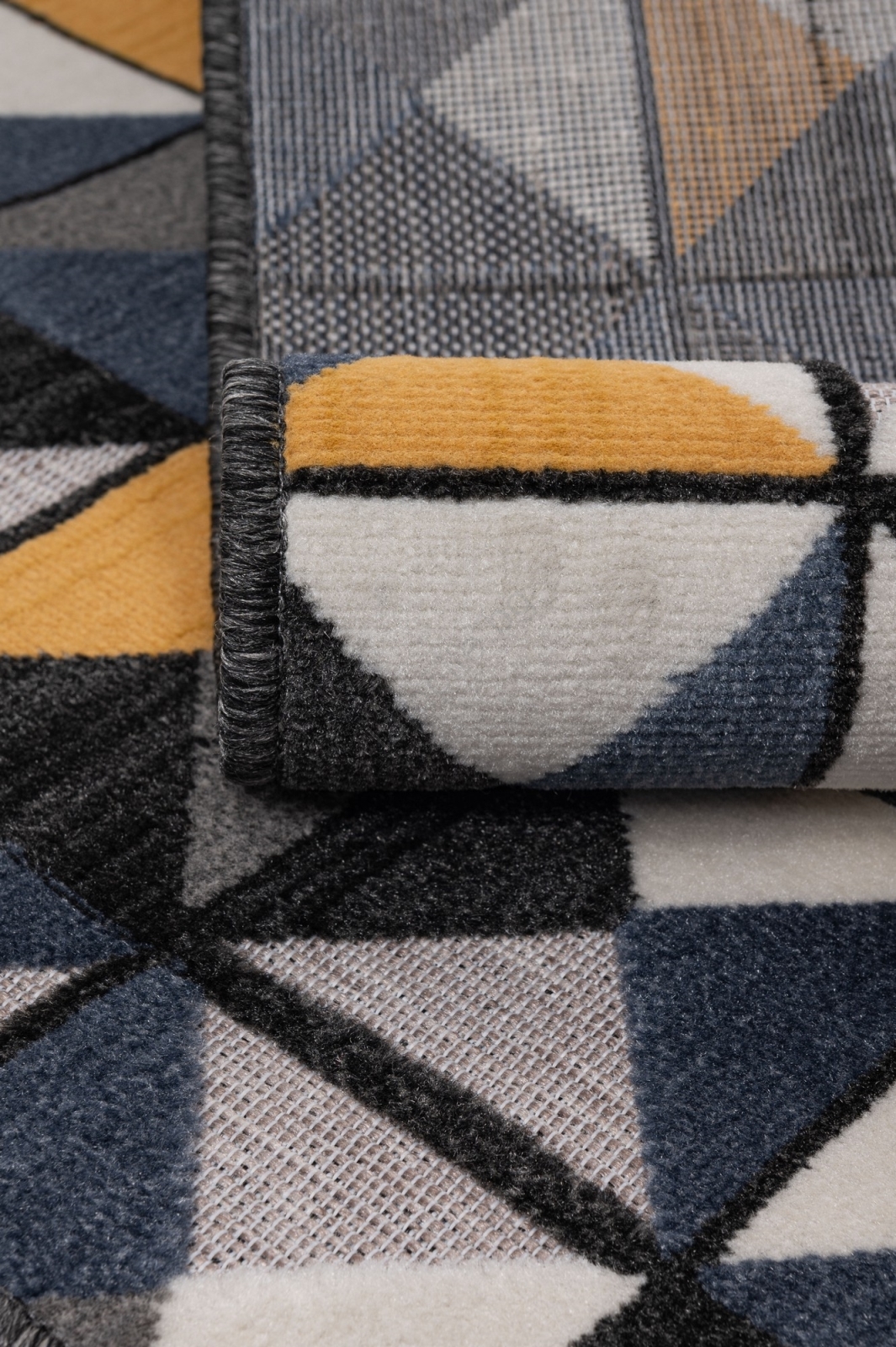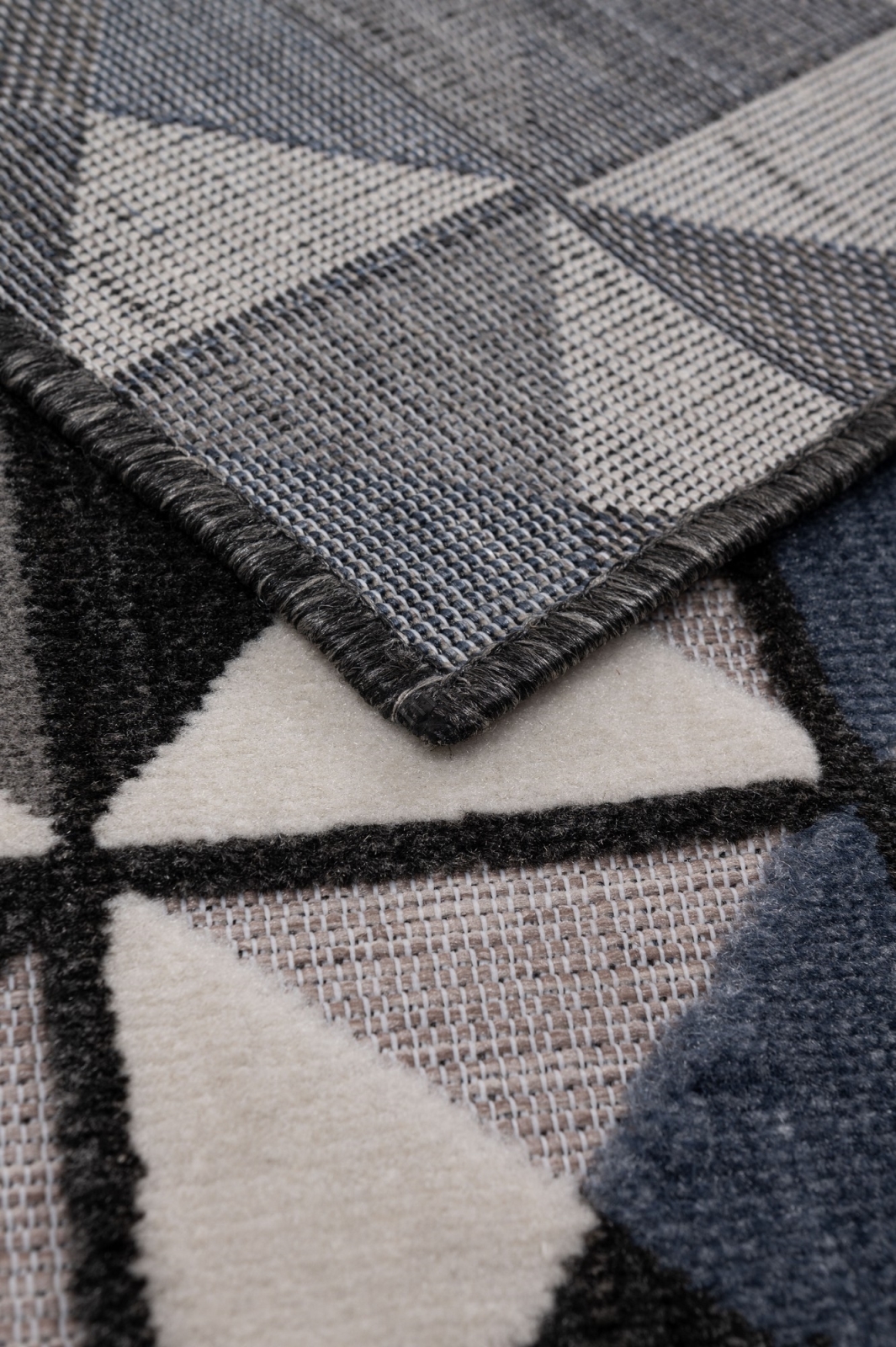 • Ворсът има модерен геометричен десен с различни височини на влакната, което придава 3D ефект.