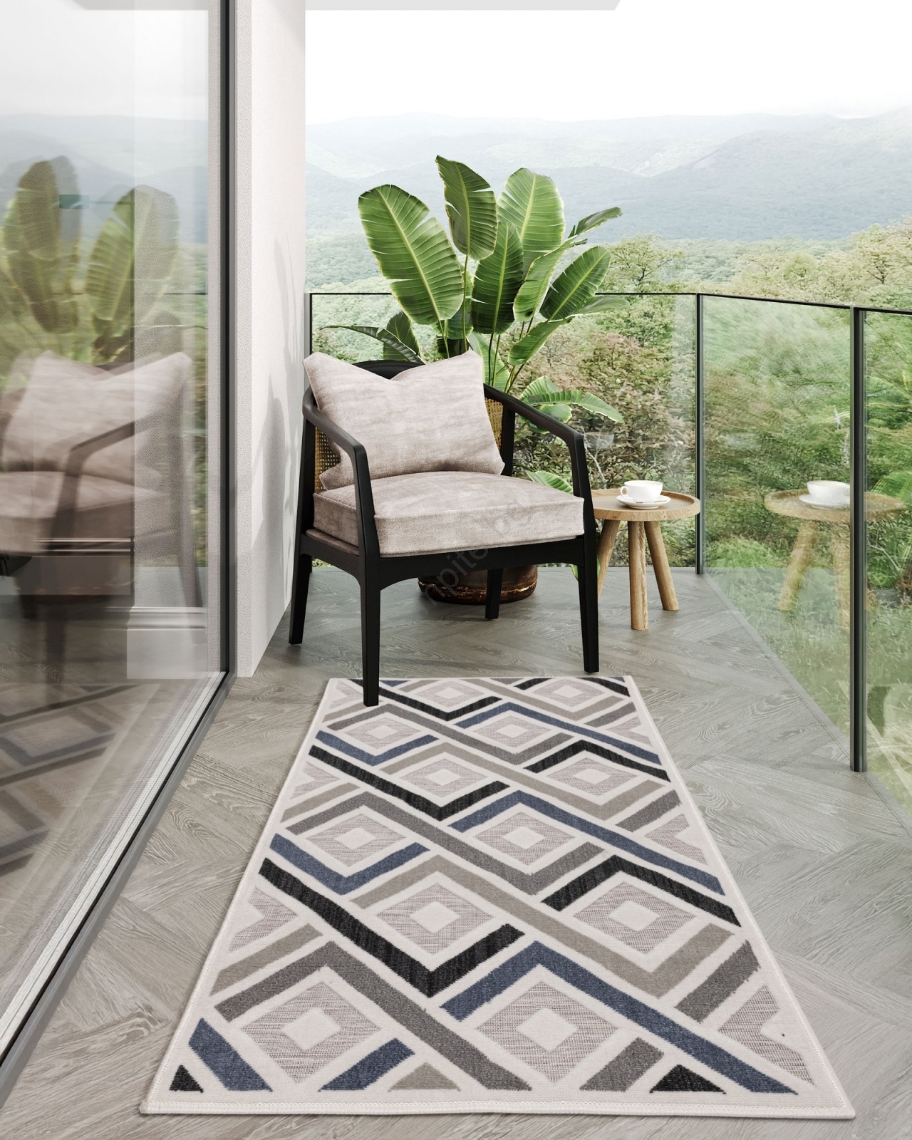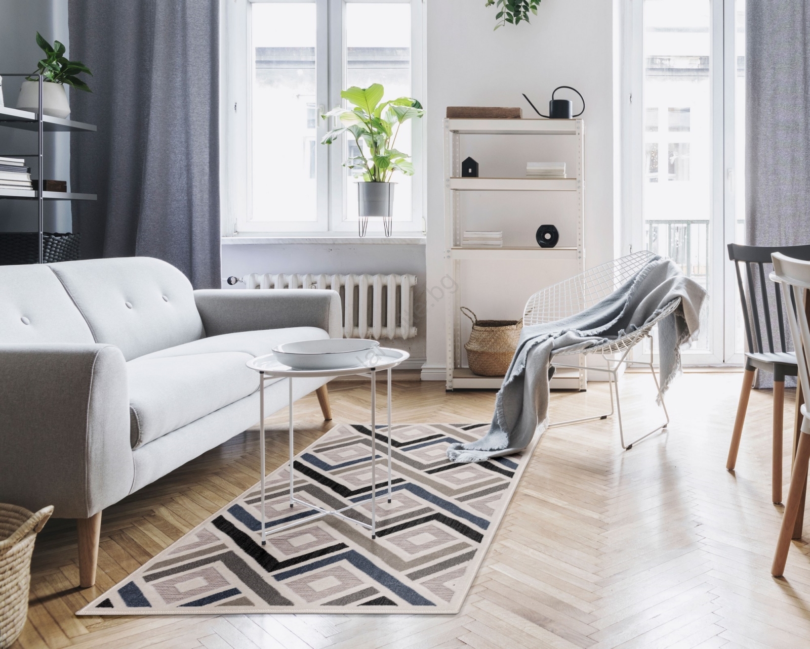 • Стилен и елегантен килим с геометрични мотиви.
