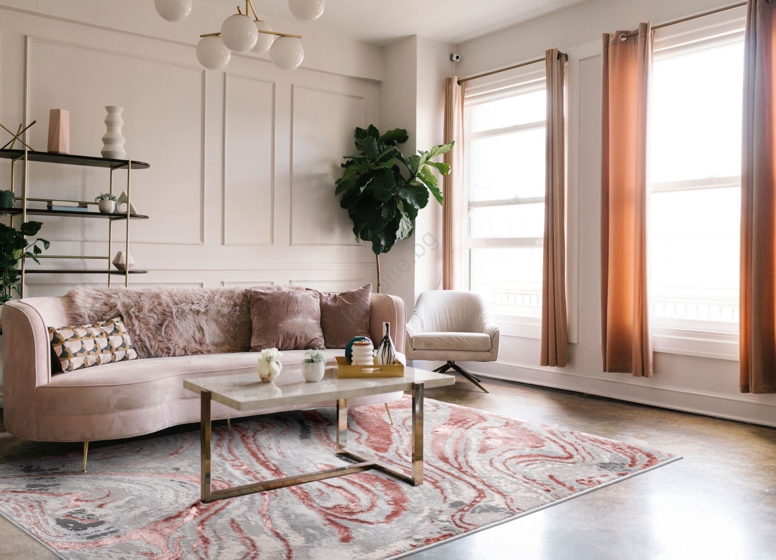 • Естетичен и модерен килим с нежни абстрактни мотиви.