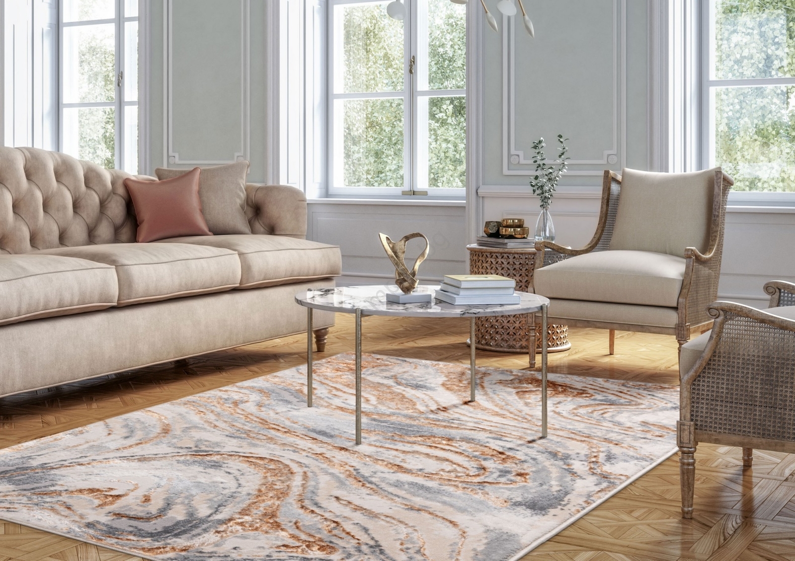 • Естетичен и модерен килим с нежни абстрактни мотиви.