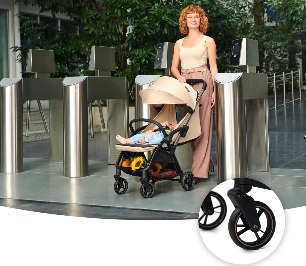 • Може да се прикрепи към рамката с универсални адаптери, които заедно със седалката 40-75 см (0-13 кг) образуват TRAVEL SYSTEM.