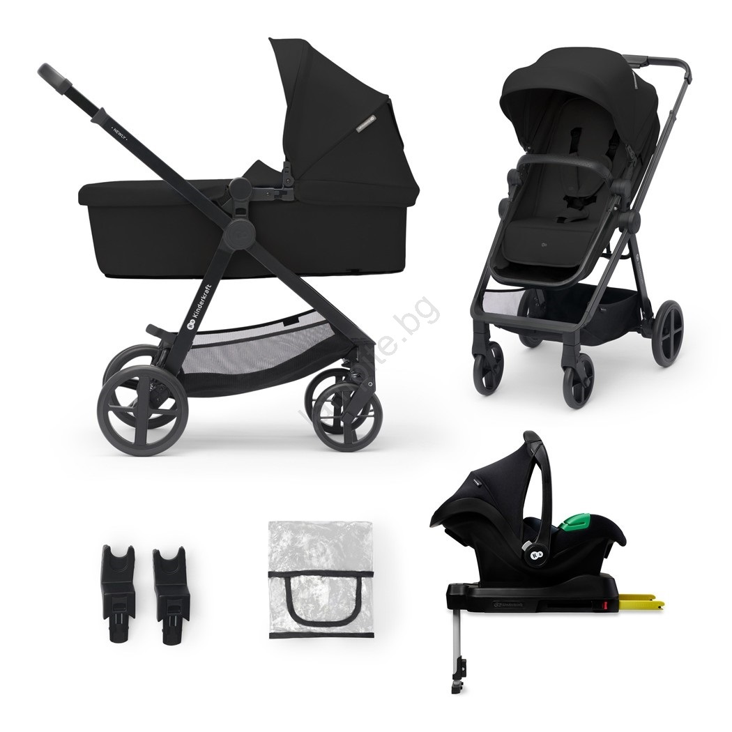 KINDERKRAFT - Комбинирана количка 4в1 NEWLY Classic черна + детско столче MINK PRO с основа ISOFIX