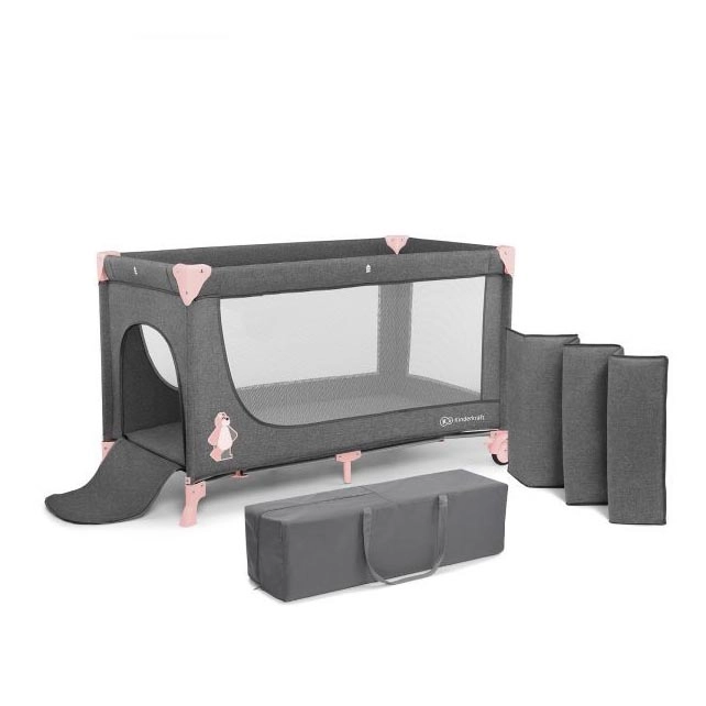 KINDERKRAFT - Пътническо легло JOY в сиво-розов цвят