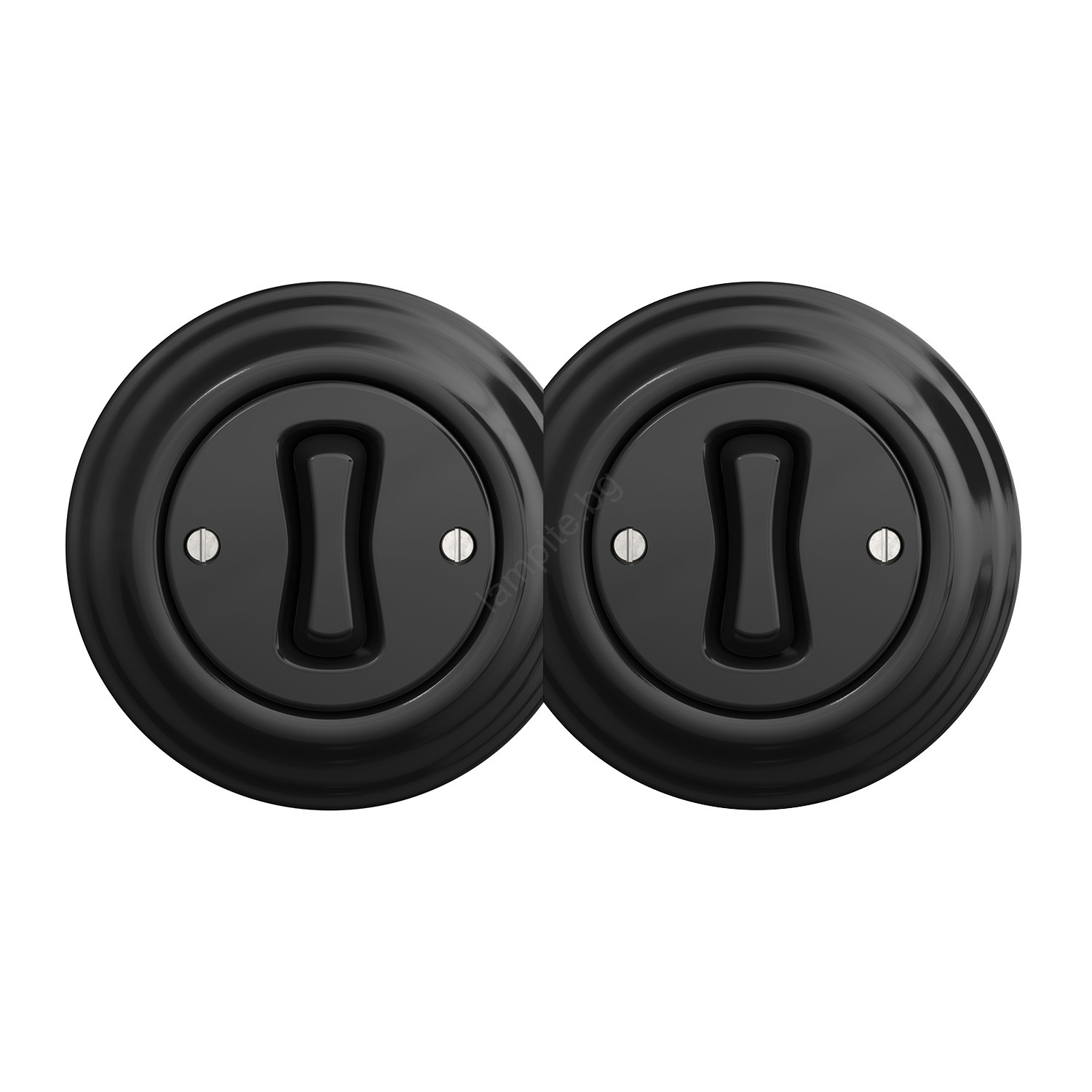 Kliklap - Двоен ретро еднополюсен ключ с рамка № 1, черен