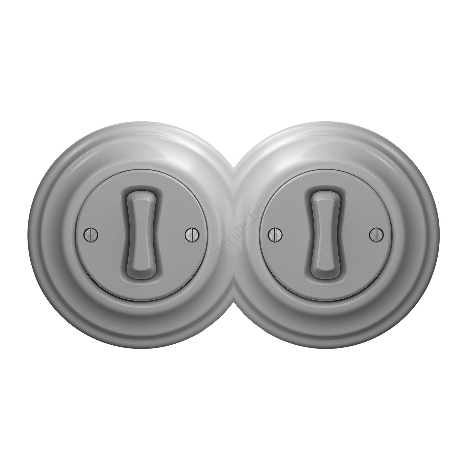 Kliklap - Двоен ретро еднополюсен ключ с рамка № 1 сив