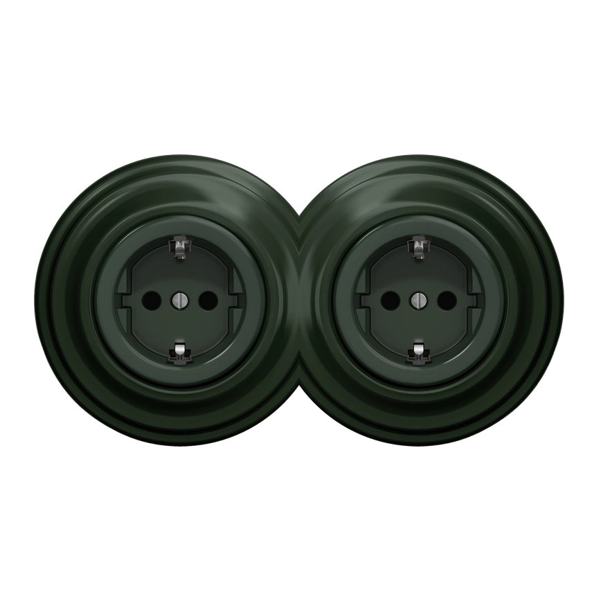 Kliklap - Двойна ретро домашна розетка със SCHUKO рамка, 230V, зелена