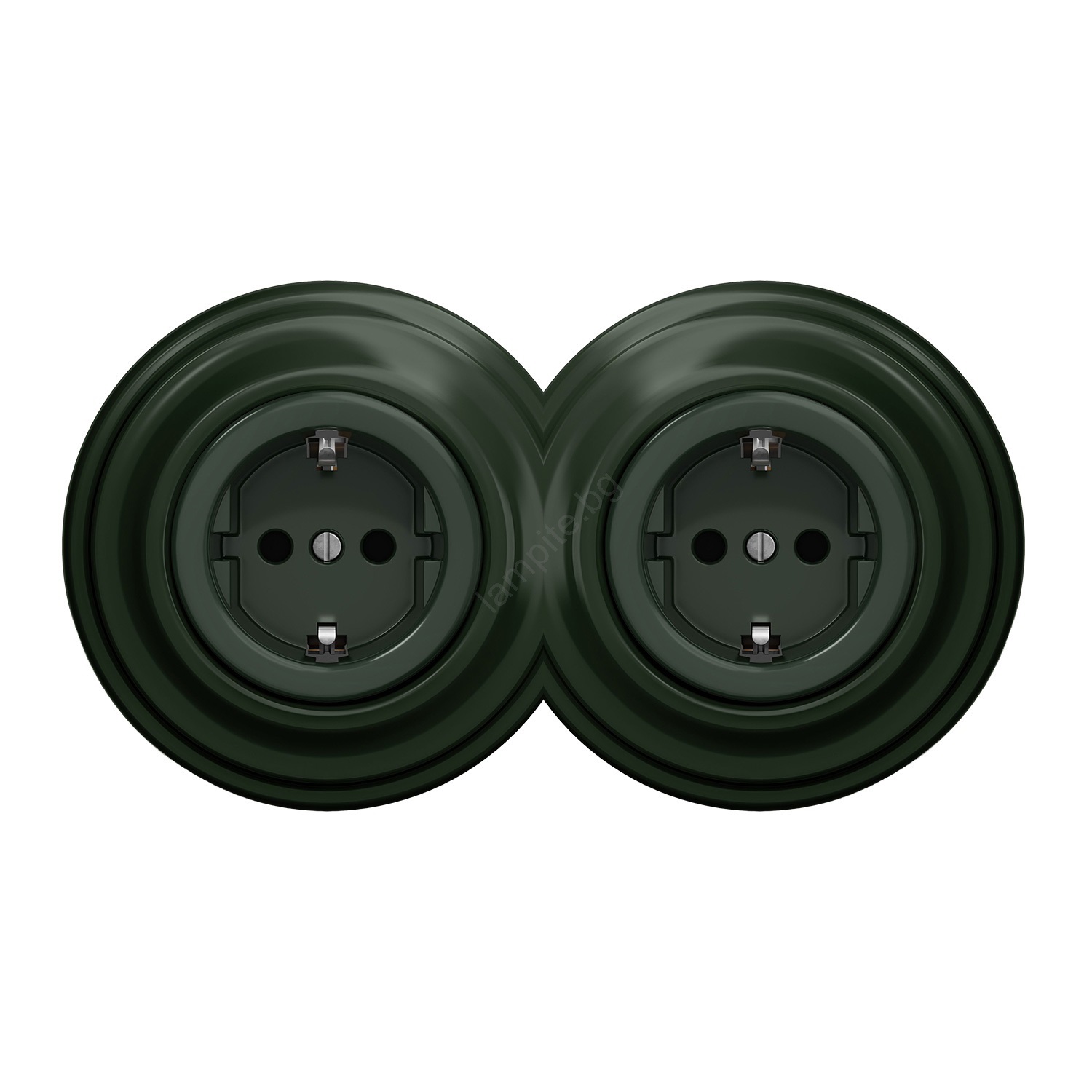 Kliklap - Двойна ретро стенна розетка с рамка SCHUKO 230V зелена