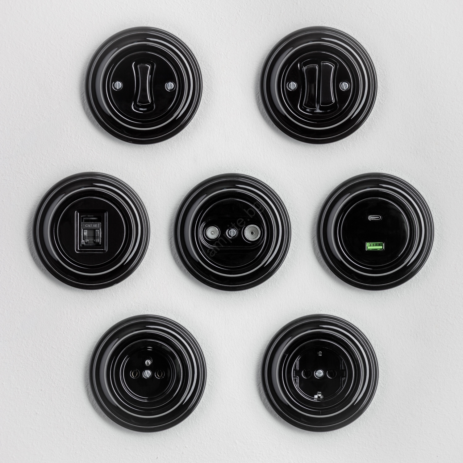 Kliklap - Ретро стенна розетка с рамка 230V черна