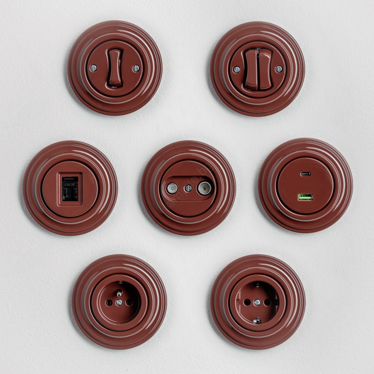Kliklap - Ретро домашен контакт с рамка SCHUKO 230V/16A кафяв