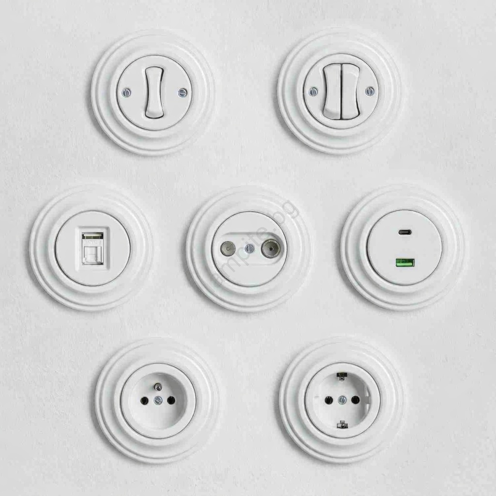 • Kliklap - Ретро бял керамичен двоен бутон с рамка