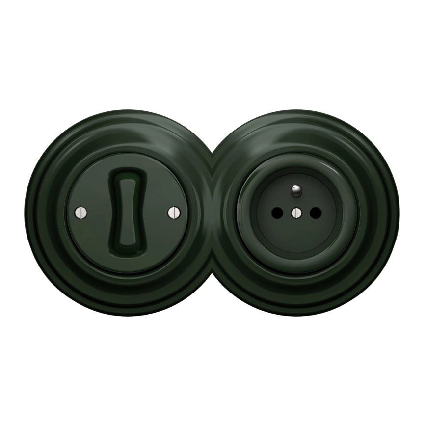 Kliklap - Ретро еднополюсен ключ № 1 и розетка 230 V с зелена рамка