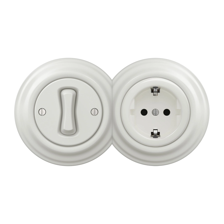 Kliklap - ретро еднополюсен ключ № 1 и SCHUKO розетка 230 V с бяла рамка
