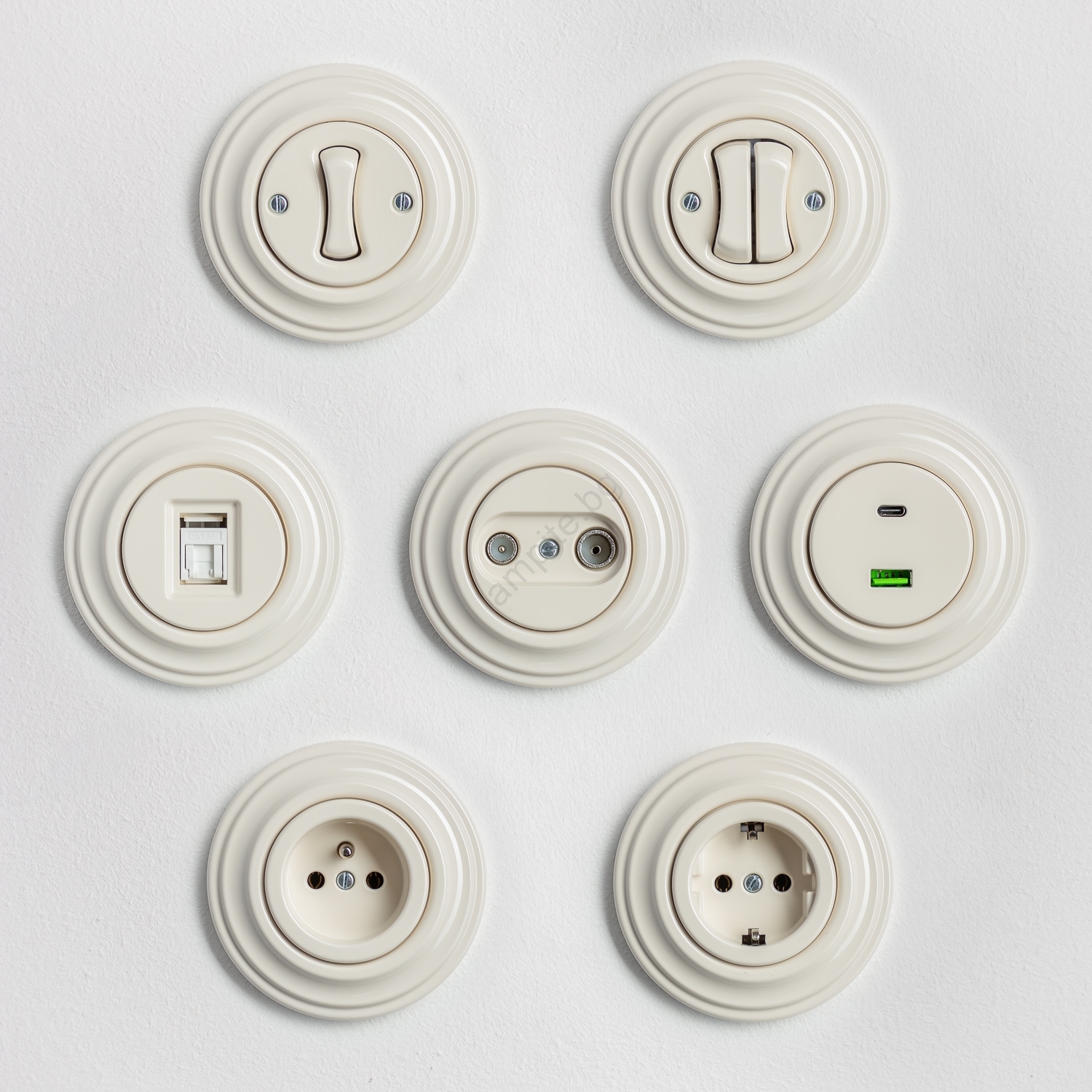 • Kliklap - Ретро бял керамичен стълбищен ключ без рамка № 6