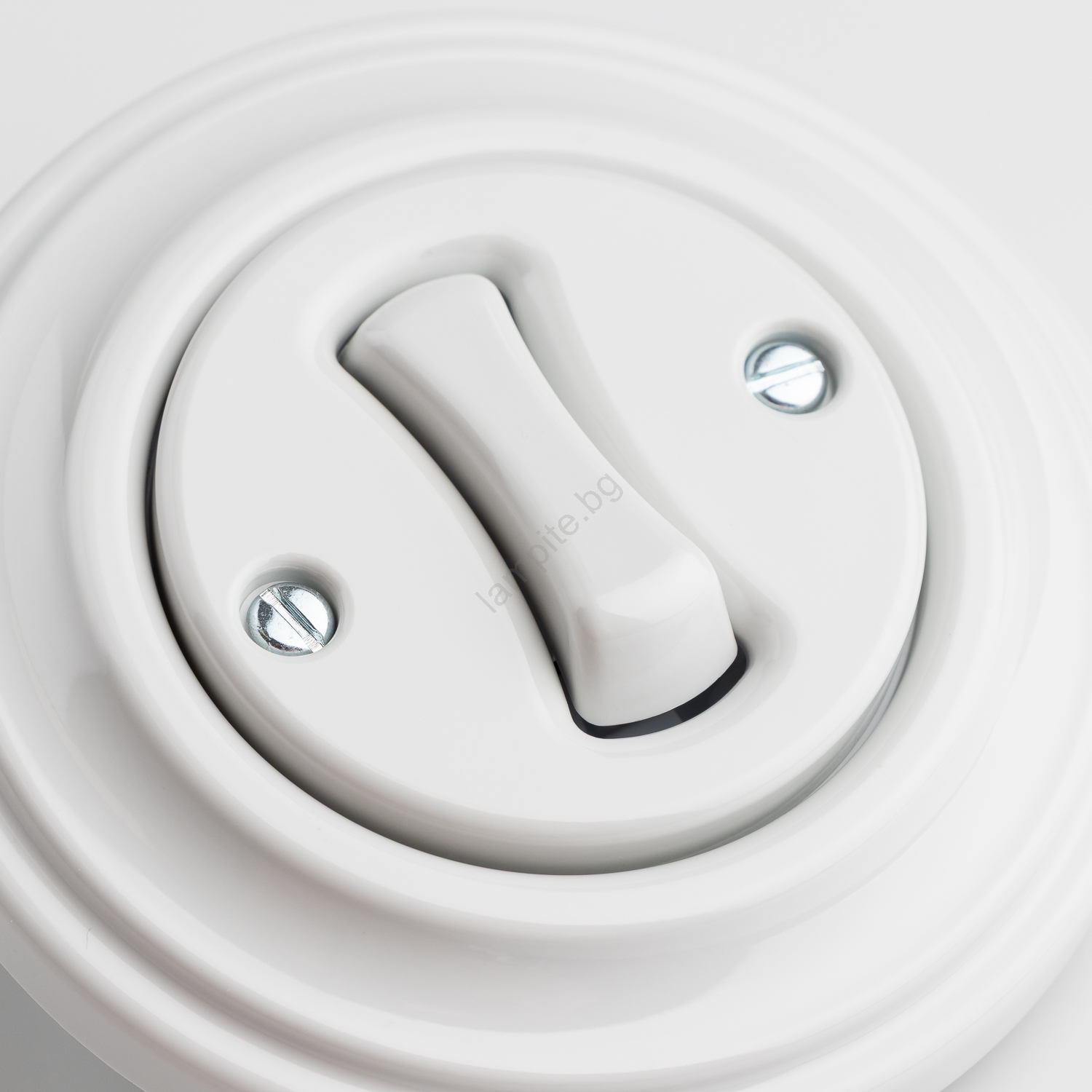 Kliklap - Ретро бял керамичен стълбищен ключ с рамка № 6